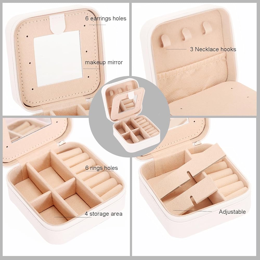 • Portable Travel Essentials: Designed for on-the-go jewelry organization, this compact travel jewelry stotage box is lightweight and delicate, allowing you to carry your favorite accessories wherever you go. Say goodbye to annoying knots and tangles, as the box features 7 slot rolls, 4 removable rectangular divisions, 6 stud earring compartments, 3 necklace hooks, and a mini vanity mirror for added convenience.