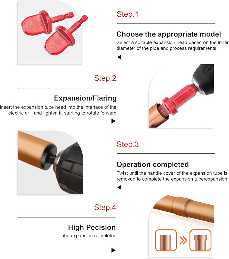 • 【High Efficiency】Compared with traditional manual copper pipe swaging tool hvac, our pipe expansion tool are small in size, easier to use, no need to vigorously expand the copper pipe hole, Works more efficiently than round nose reaming tools when combination with drill and impact drill.