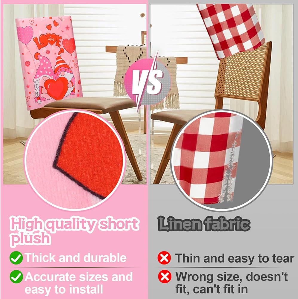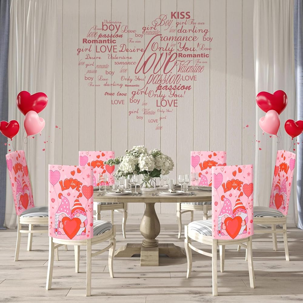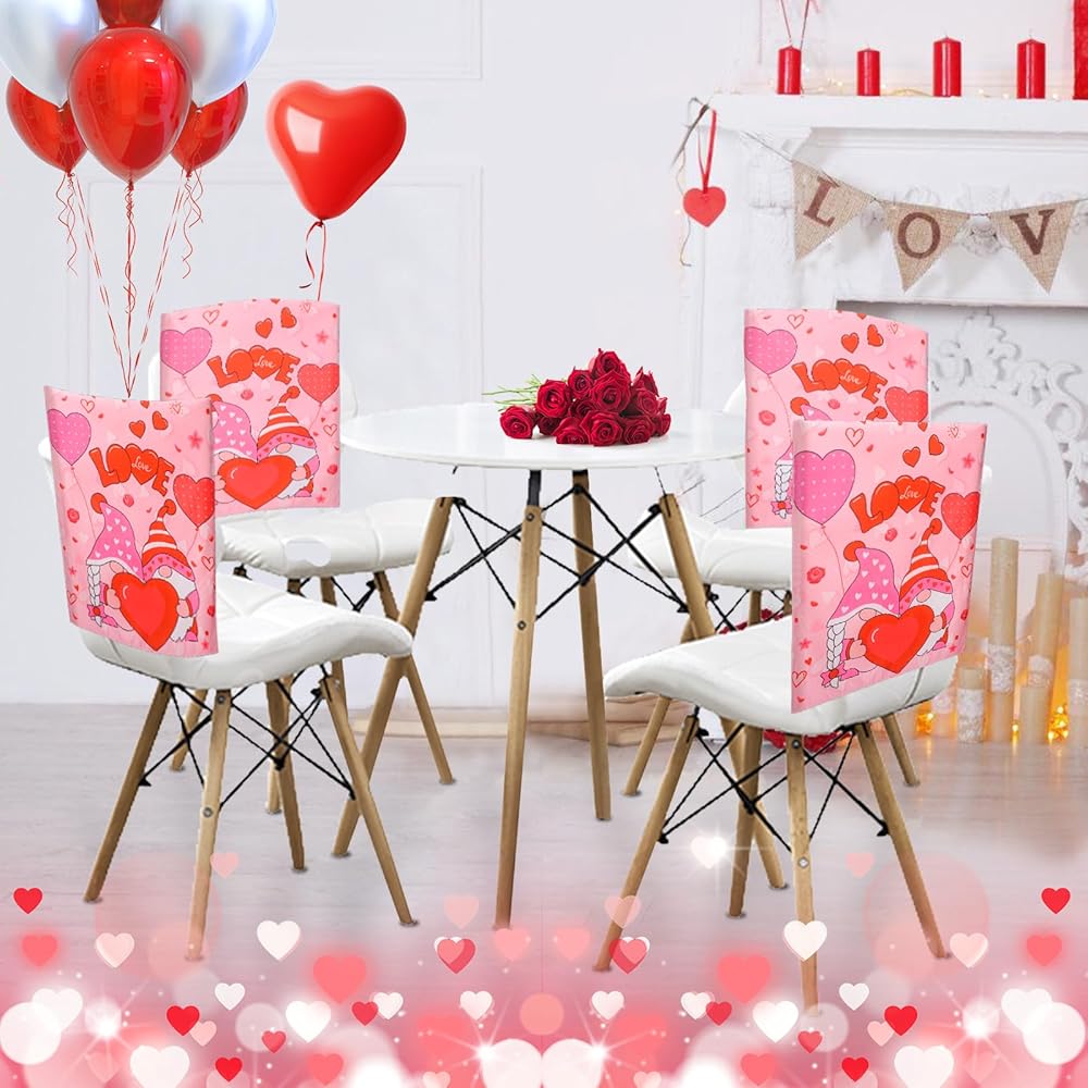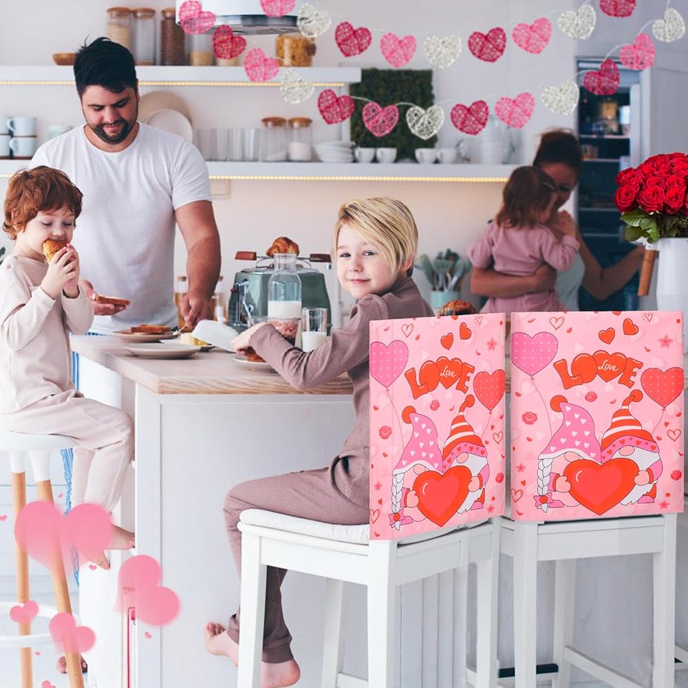 💗Elite Gnome Love for Valentine's: Immerse yourself in the spirit of Valentine's Day with these gnome heart chair back covers. Featuring a delightful pink hue, adorned with the word LOVE and rose patterns, they capture the essence of romance. Transform your space with these charming covers that perfectly complement the Valentine's atmosphere.