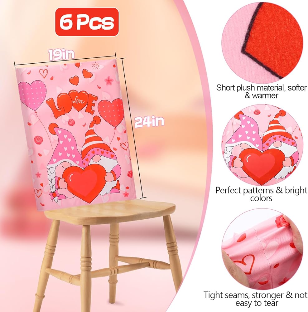 Short Plush Valentine's Day Chair Covers, 6Pcs Fit on Most Chair- Removable Washable Gnome Heart Chair Back Covers, Love Heart Chair Protectors for Valentine Party Decor Gift Dining Room Kitchen