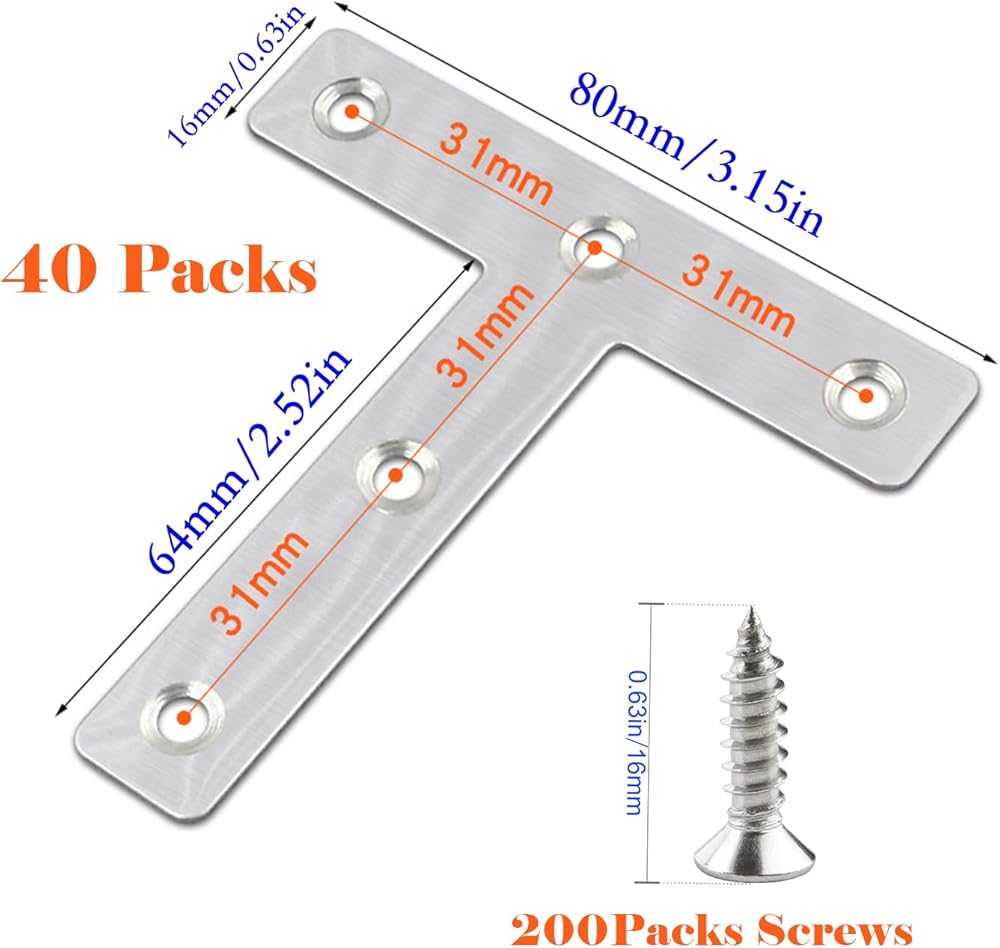 The T Bracket Connector Fixing Repair Plates come with the screws for perfect fit fastening.