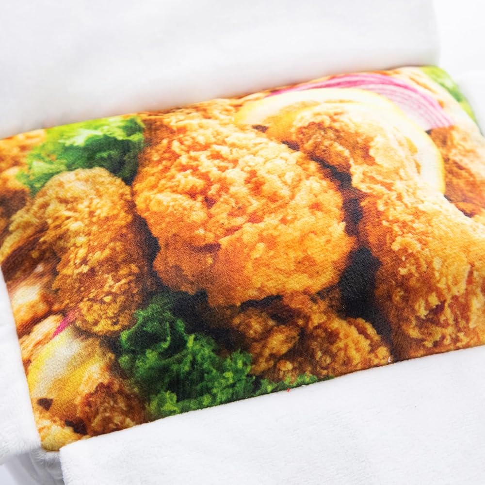 -Material Description:The pillow is made of super soft short plush cover and stuffed with PP cotton.The size of this fried chicken box pillow is 25*20*15cm/9.84*7.87*5.91inch.