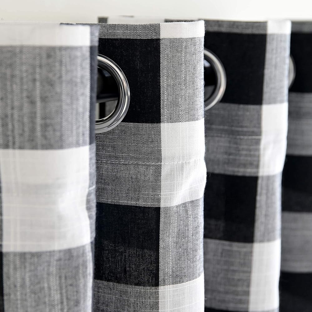 - ستارة قصيرة منقوشة ذات جودة عالية لبيت المزرعة باللون الأسود والأبيض