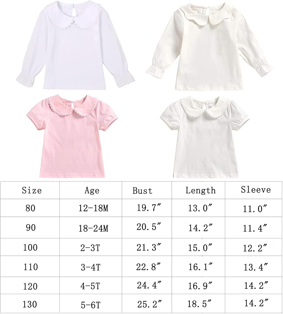 - التصميم: قميص بيتر بان للفتيات اللطيفات، أكمام قصيرة منتفخة، تصميم ياقة الدمية الأساسية، لطيف وعصري، بلوزات للفتيات الصغيرات كلاسيكية وأنيقة. رقبة دائرية، وأكمام قصيرة. قميص بلوزة صيفي رائع جدًا، قميص صيفي لطيف للأطفال الصغار.