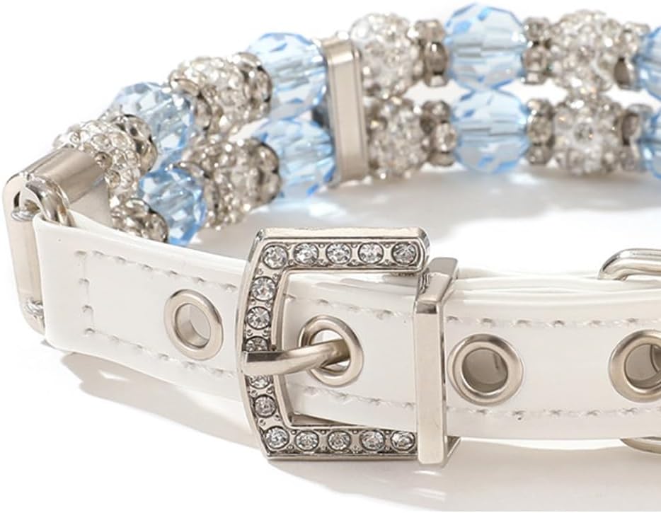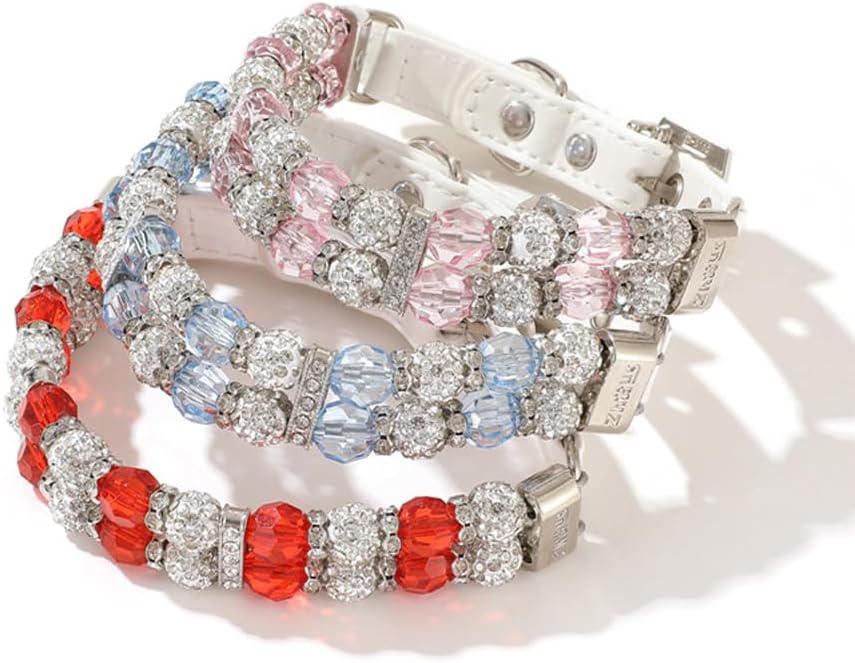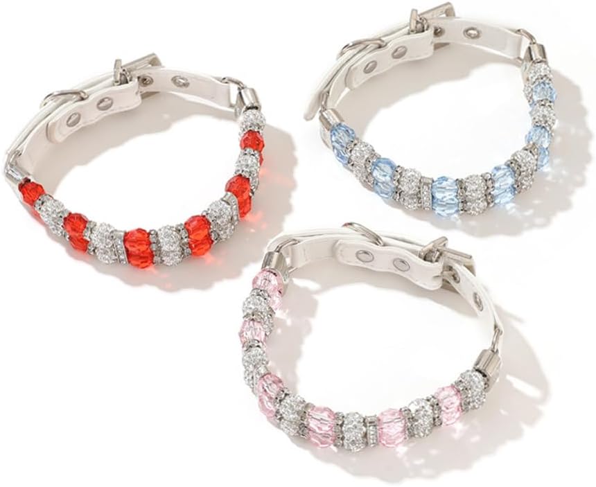Premium quality acrylic beads material connected with shiny rhinestones, the necklace is very durable and suitable for small dogs and cats.own this collar she will have different style to choose for many occasions.