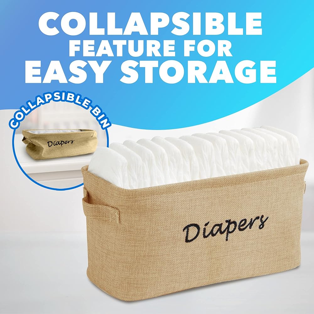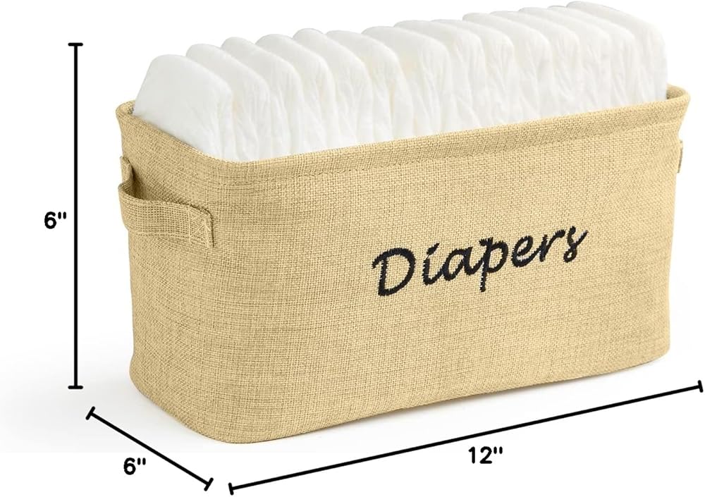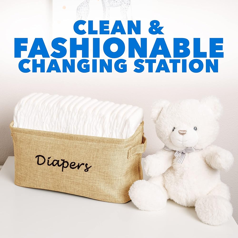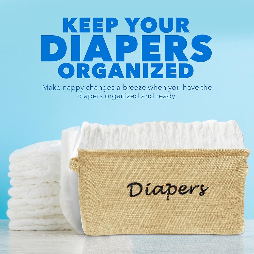 قم بتنظيم حفاضات طفلك - اجعل تغيير الحفاض أمرًا سهلاً عندما تكون الحفاضات منظمة وجاهزة. تحتوي سلة تنظيم الحفاضات الخاصة بنا على مقبض لسهولة الحمل. يسمح لك الجزء العلوي المفتوح بإمساك الحفاض بسهولة عندما تحتاجين إليه.