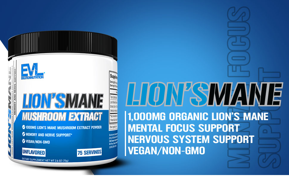 مكمل فطر عرف الأسد العضوي من Evlution - مكمل دعم الدماغ من مسحوق فطر عرف الأسد منشط الذهن للتركيز ووضوح الذاكرة ودعم المناعة والتغذية.