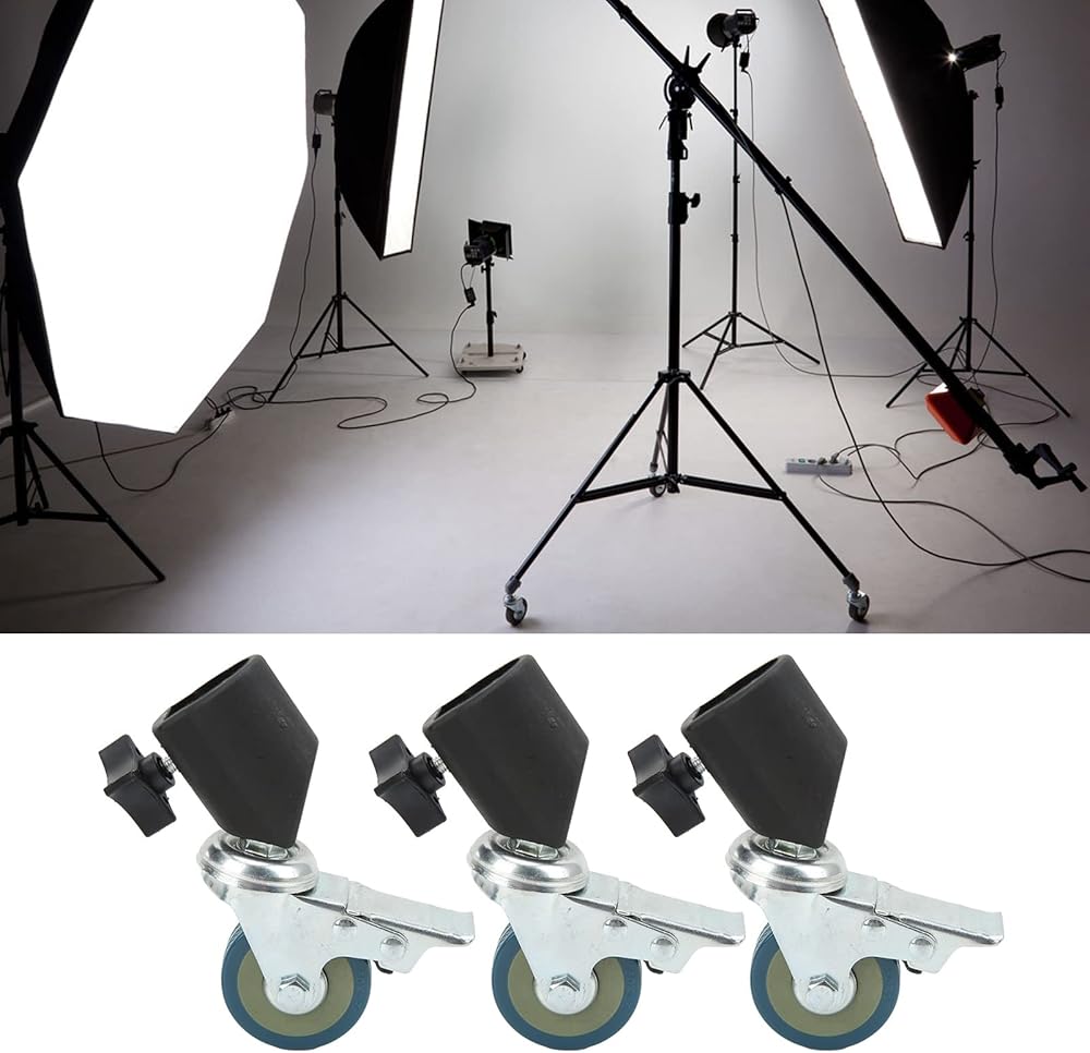 070 3 Light Stand Swivel Wheels, Studio Swivel Wheels, Photography C Stand Swivel Wheels with Brake, for Light Mounts, Photography Tripods, Video Recording, Etc.