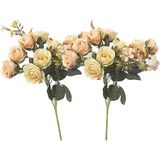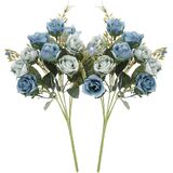 تحتوي كل مجموعة على 5 سيقان و10 براعم ورد زرقاء. تحتوي العبوة على مجموعتين من الزهور المزيفة. مصنوع من مادة حريرية عالية الجودة ومصنوع يدويًا بشكل معقد.