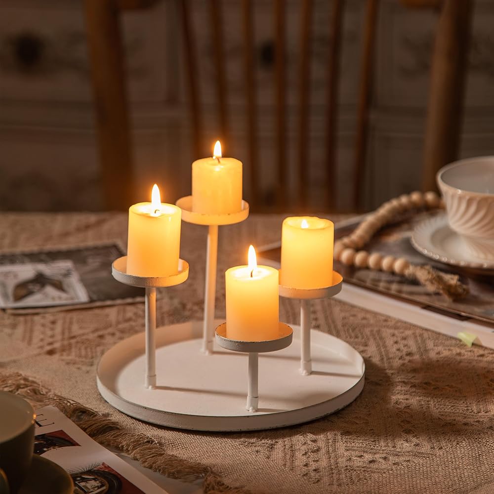 【حوامل شمعدان بتصميم فريد】يمكن لحامل الشموع هذا أن يحمل أنواعًا مختلفة من الشموع أو الزخارف الموسمية الأخرى. تتيح لك صواني الشموع إطلاق العنان لإبداعك.