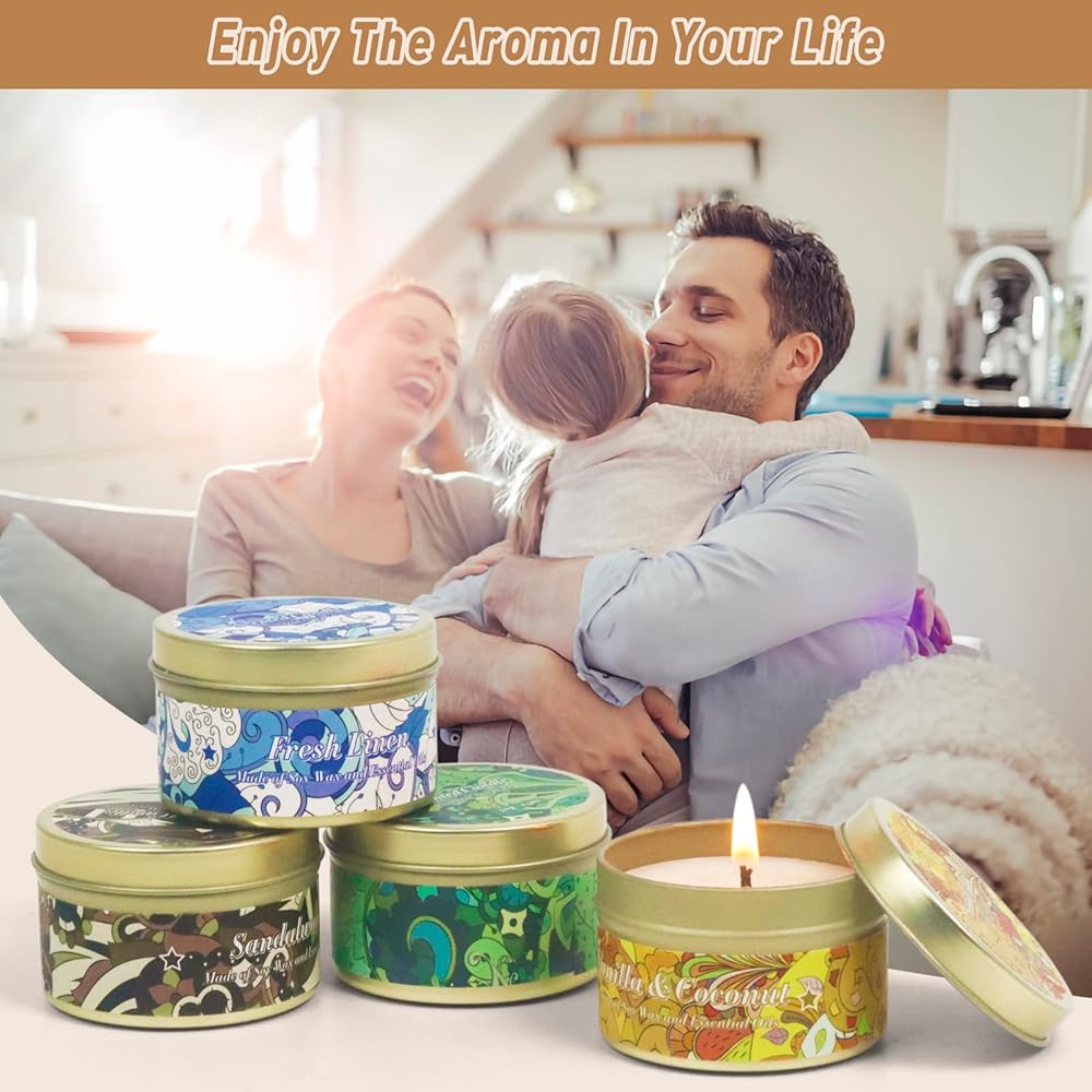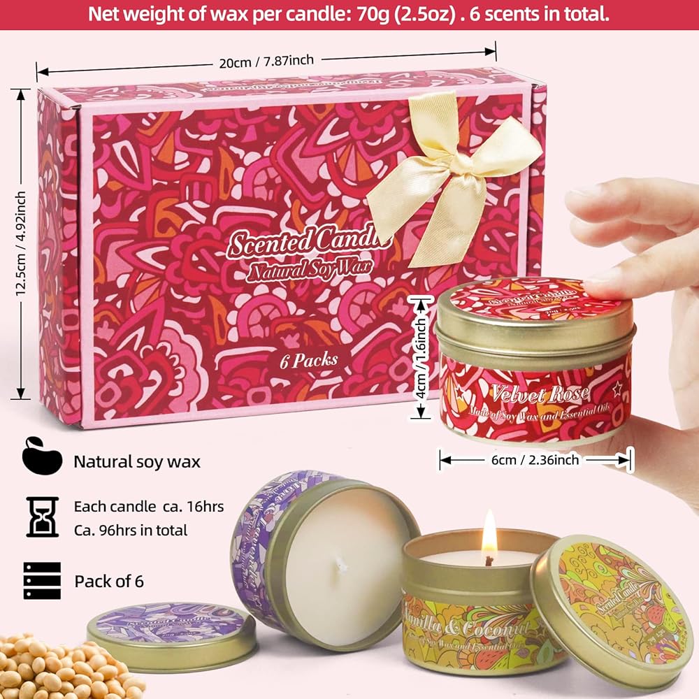 شموع معطرة من شمع الصويا بخاصية إطلاق الروائح العلاجية، شمع من القصدير طويل الأمد، مجموعة هدايا للنساء وأعياد الميلاد وهووسورمينغ 6 روائح مختلفة