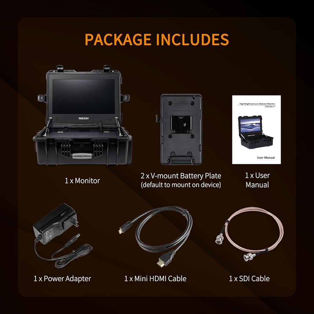 [محتويات العبوة] 1 × شاشة محمولة، 1 محول طاقة، 1 كيبل اس دي اي، 1 كيبل HDMI صغير، 2 لوحة بطارية مثبتة على شكل V (افتراضية للتركيب على الجهاز)، 1 دليل المستخدم
