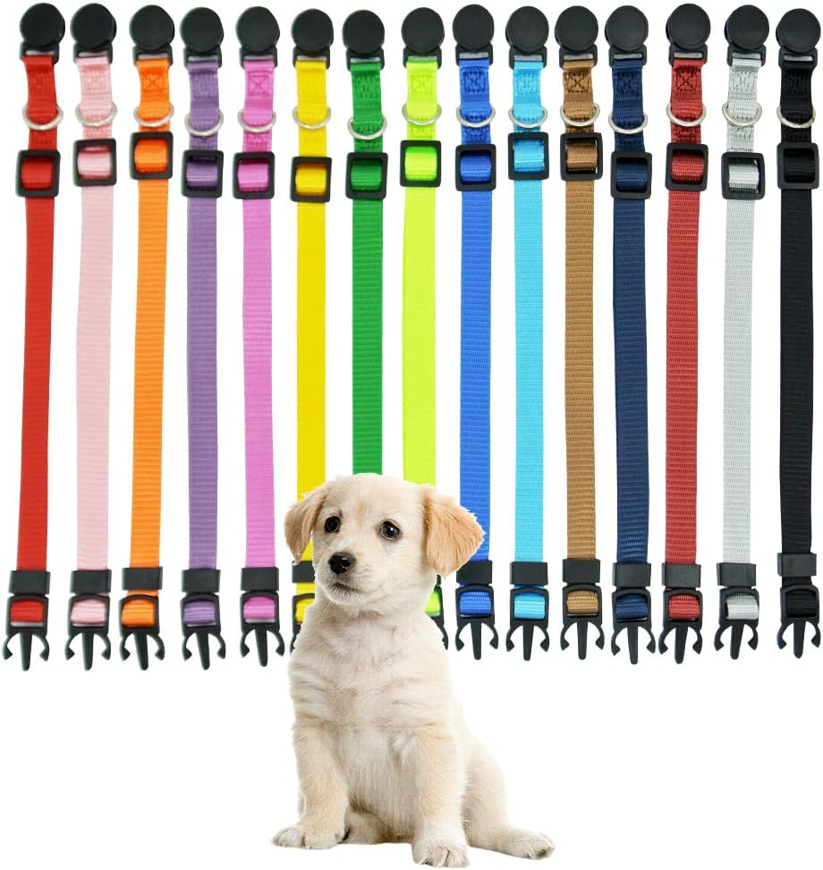 🐕 أنيق وموثوق: مجموعة مقود طوق الجراء لدينا مكونة من 15 لونًا مختلفًا، وألوان زاهية، وهي مميزة مما يجعل من السهل التعرف على الجراء المشابهة، ويسهل العثور عليها وتتبعها.