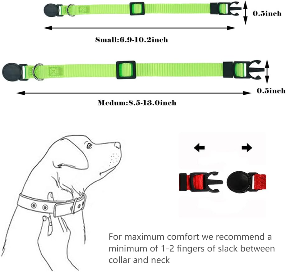 🐕 قابلة للتعديل بالكامل: يمكن أن تناسب أطواق الجراء هذه الحيوانات الأليفة التي يتراوح محيط رقبتها من 6.9 إلى 10.2 بوصة. لذلك يمكن للحيوانات الصغيرة الأخرى التي يكون مقاس رقبتها ضمن هذا الحجم أن ترتديها. تعتبر الحلقة المعدنية على شكل حرف D رائعة بالنسبة لك لربط بطاقة الهوية أو المقود.