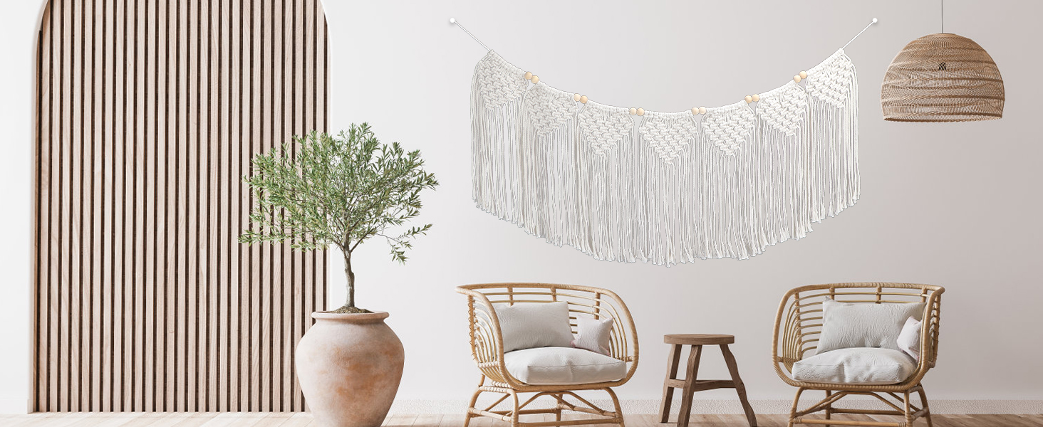 • Versatility in Decor: The classic design makes this macrame tapestry suitable for different scenes. It can serve as bedroom and living room decor, fireplace decor, party decor, window embellishment, photo wall display and more.