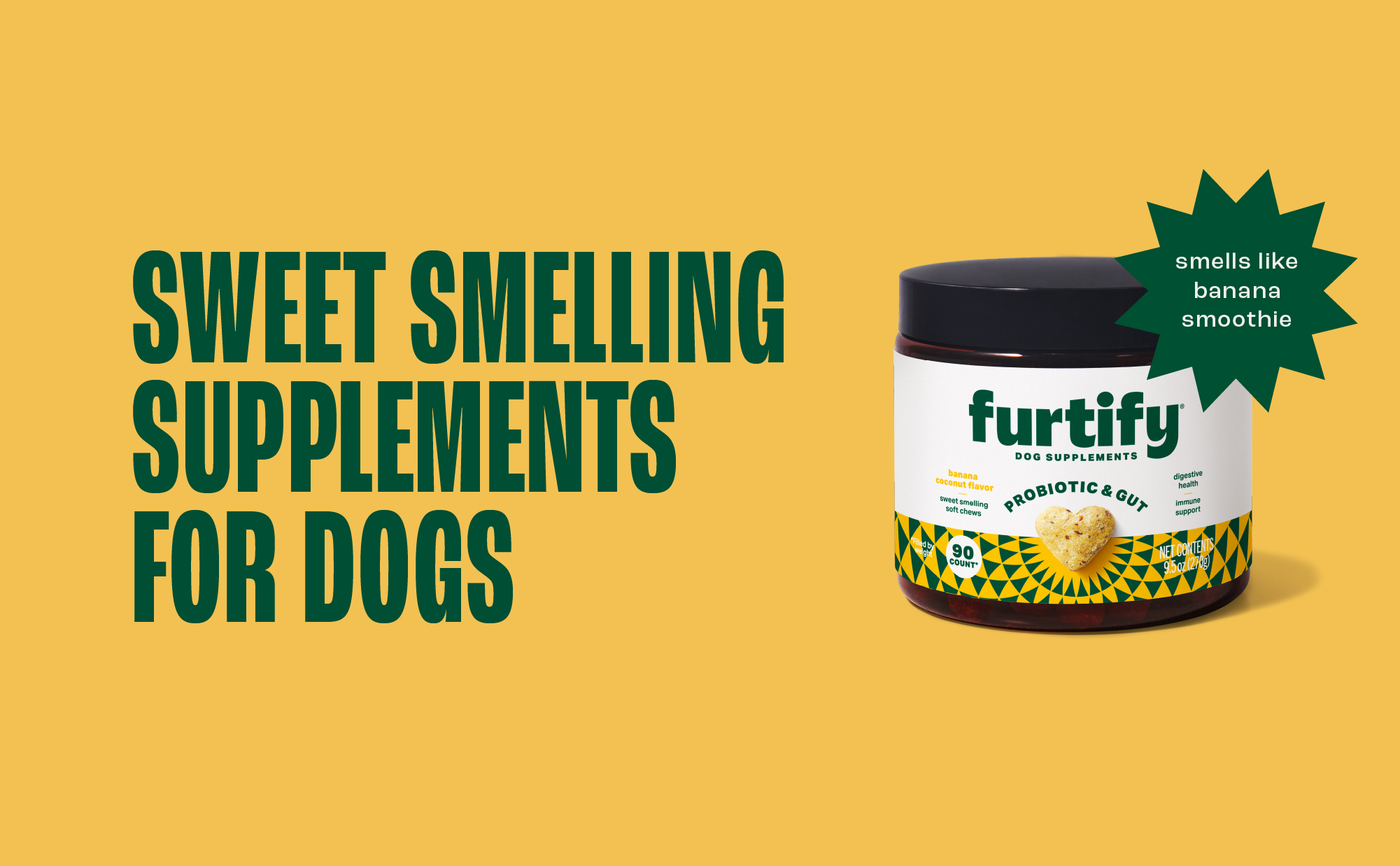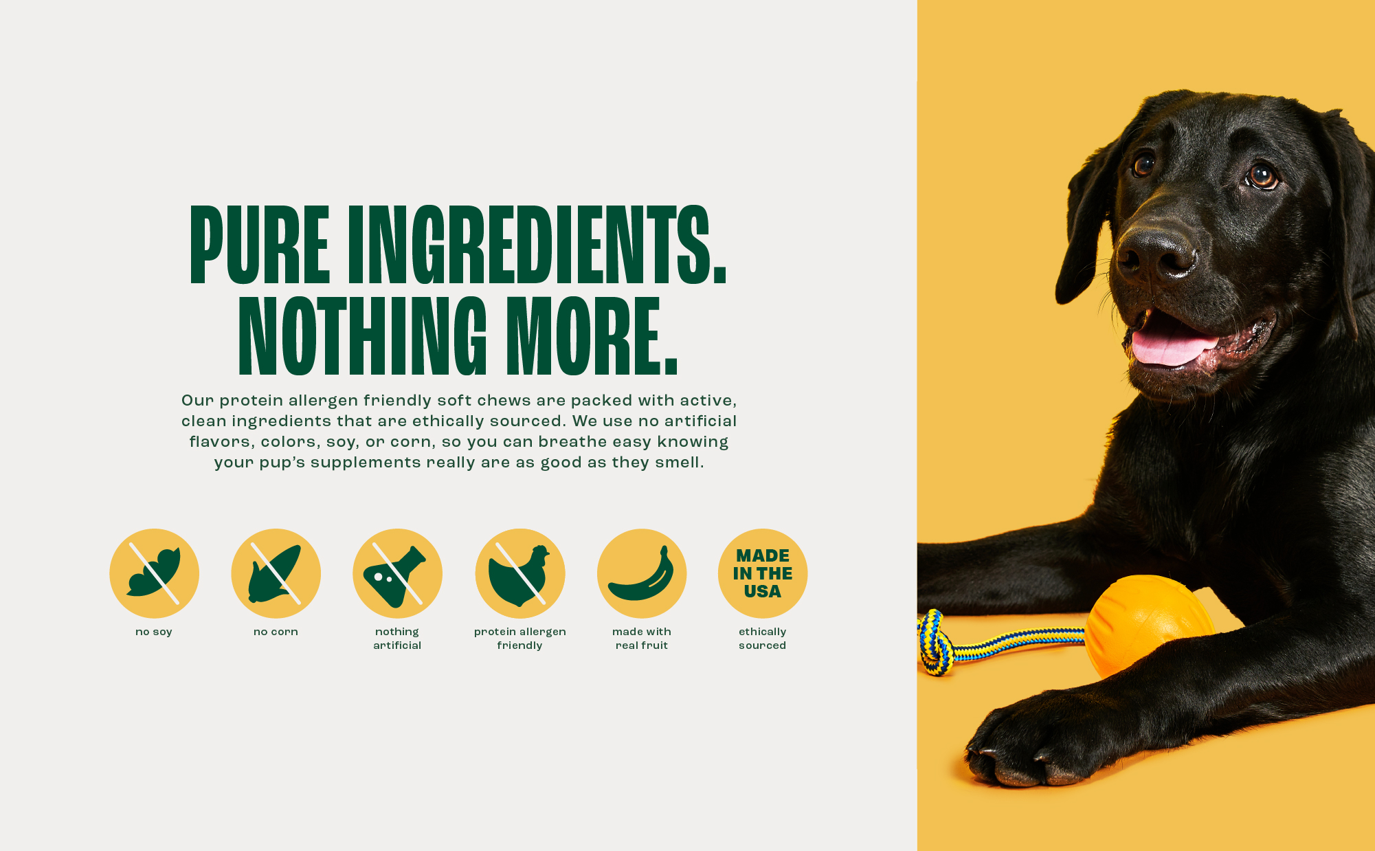 طعم جدير باللعاب - قل وداعًا للأنوف المقلوبة ومكملات البروبيوتيك المهدرة للكلاب. تستخدم البروبيوتيك والبريبايوتكس المحصنة للكلاب الموز الحقيقي وجوز الهند لخلق طعم لذيذ ولون نابض بالحياة - من المستحيل مقاومته، حتى بالنسبة للأكل صعب الإرضاء.