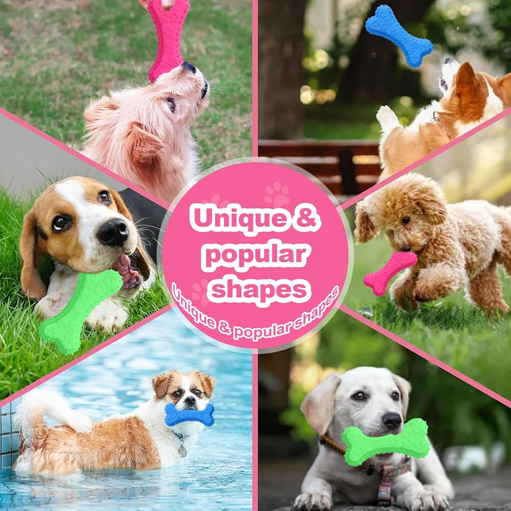 Puppy teething toys are made of TPR natural rubber, 100% non-toxic, soft and highly elastic, easy to clean. It is gentle and safe for your dog and will not harm your dog's teeth. In addition, when you are busy, your dog can play with these multi-coloured dog toys by himself and will not feel lonely.