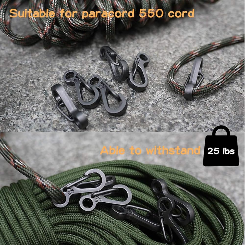 إنها تتحمل بشكل جيد حقًا من أجل التثبيت السريع وتأمين المعدات التي يتم استخدامها وإعادة تأمينها بشكل متكرر. لا تزال هناك استخدامات غير محدودة لهذه الأشياء الصغيرة، مثل مشبك سلسلة المفاتيح أو مشبك باراكورد أو السوار. إضافة لطيفة للتخييم والمشي لمسافات طويلة.