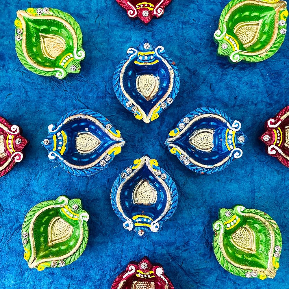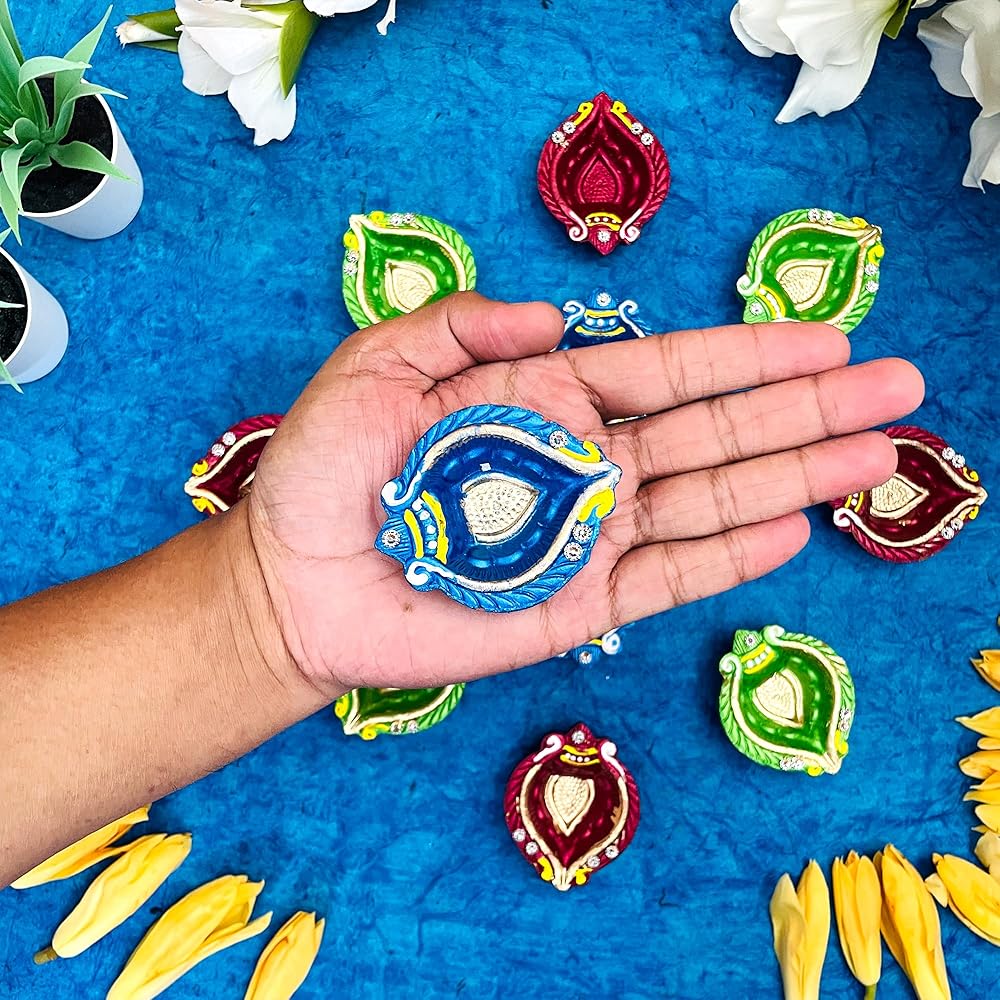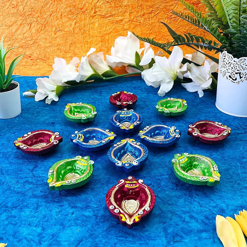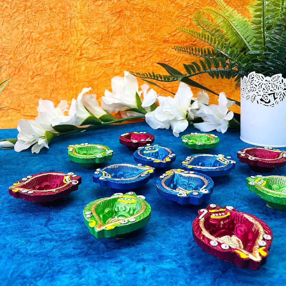 فكرة هدية مثالية: يمكنك إهداء مجموعة ديا الجميلة متعددة الألوان هذه لأصدقائك وأقاربك وجيرانك في المناسبات الدينية في افتتاح منزل/منزل جديد، كيرتان، هدية عودة ديوالي، موندان، هدايا العودة إلى المنزل الجديد الهندي، هدايا العودة الهندية، بوجا، حفل استقبال المولود الجديد، نافراتري وغيرها