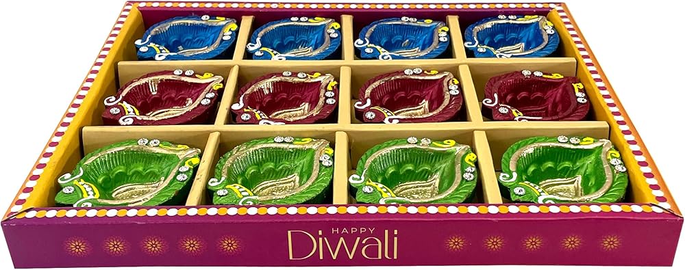 محتويات العبوة: مجموعة من 12 صلصال ديا مع فتائل قطنية باتي، تأتي في عبوة هدايا جميلة، لذلك لا حاجة لإعادة التعبئة