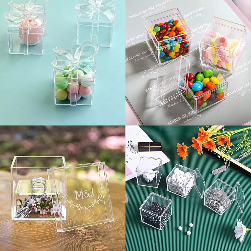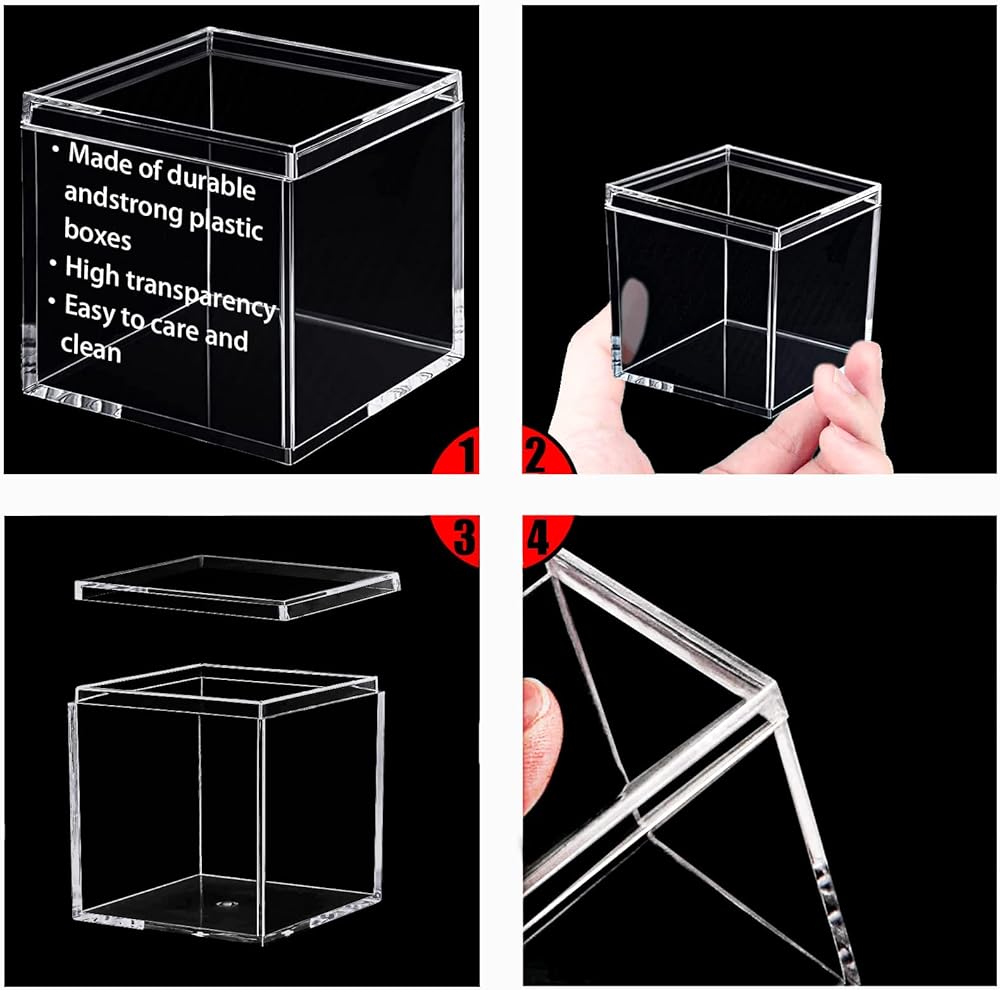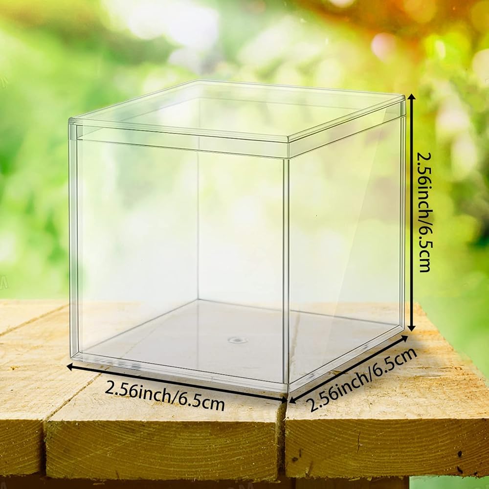 Package and size: You will receive 24 pieces clear acrylic square cube box, each measures with 2.6 x 2.6 x 2.6 inch. In total 24 pieces is enough meet your daily needs.