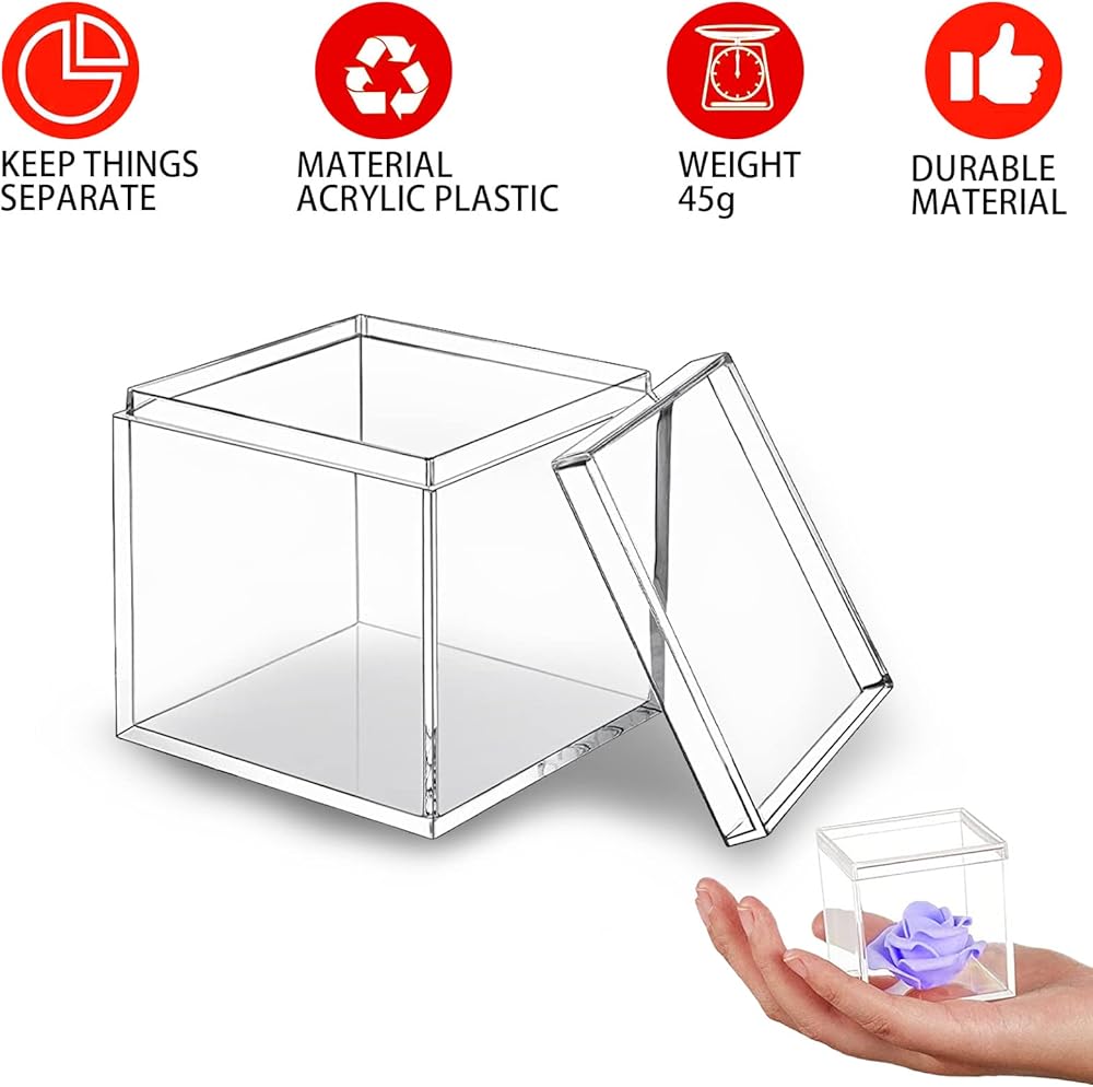 Wide applications: These acrylic box are suitable for most occasions, great use for wedding function, jewelry, gifts, candy, crafts, display boxes, nice for protecting your collections.