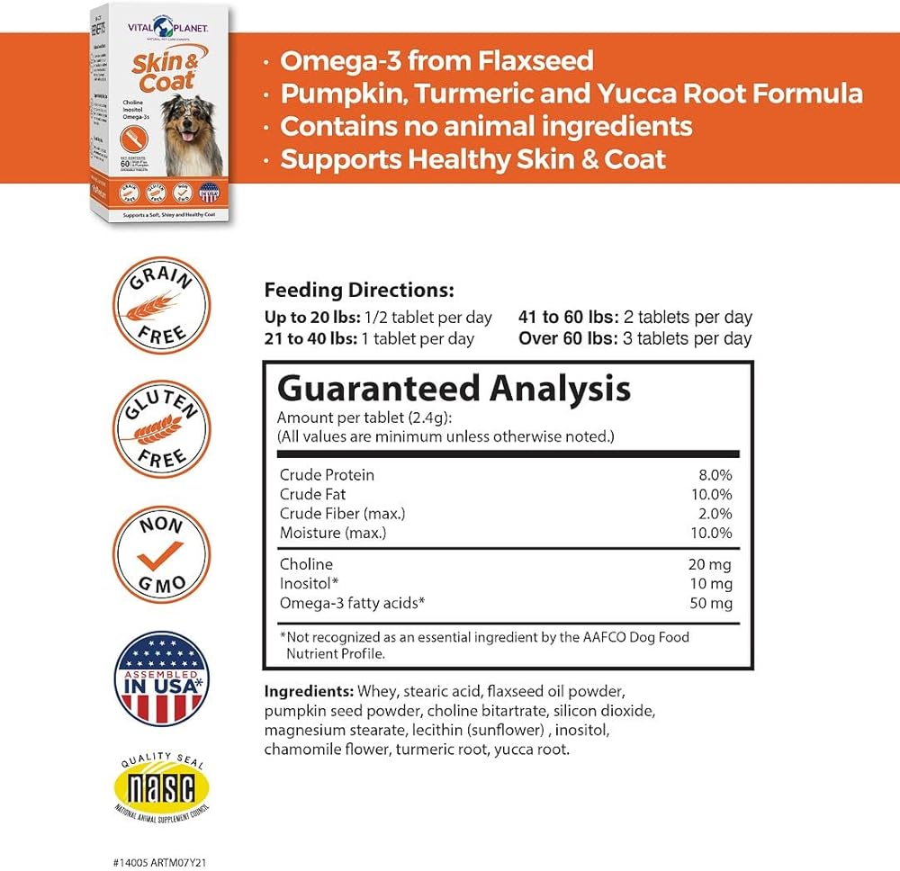 غالبًا ما تحدث مشكلات الجلد والمعطف عند الكلاب بسبب الحساسية الأساسية. تم تصميم SKIN & COAT من Vital Planet بشكل فريد لتوفير الدعم للكلاب التي تعاني من الحساسية الموسمية.