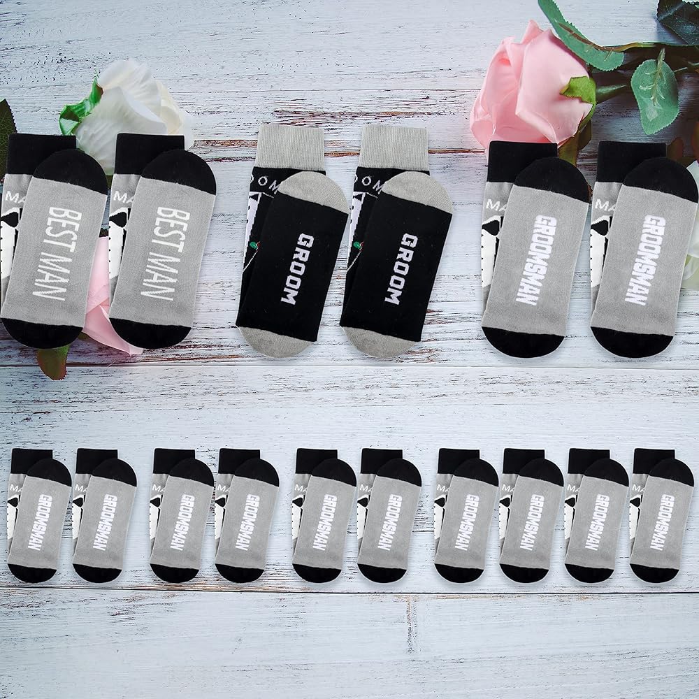 - 【8 أزواج من الجوارب】-- زوج واحد من جوارب العريس، وزوج واحد من جوارب بيست مان، و6 أزواج من جوارب العريس، والتي يمكن أن تلبي جميع احتياجاتك.