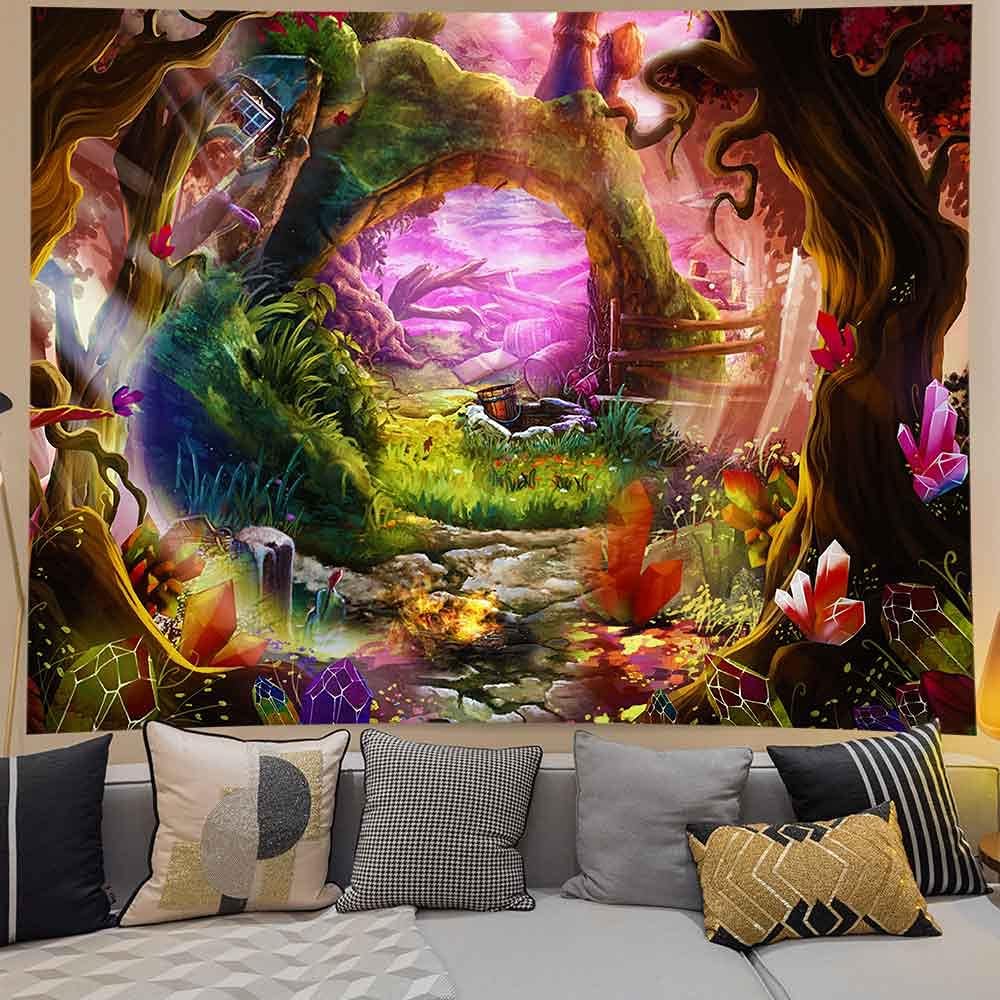 XSISTER الخيال الغابات حكاية خرافية نسيج مخدر الغابة غامضة شجرة سحرية خرافة الجان فراشة ملونة قصة الرسوم المتحركة الجمالية الفن الجدار شنقا قصيرة أفخم 8060 بوصة غرفة المعيشة