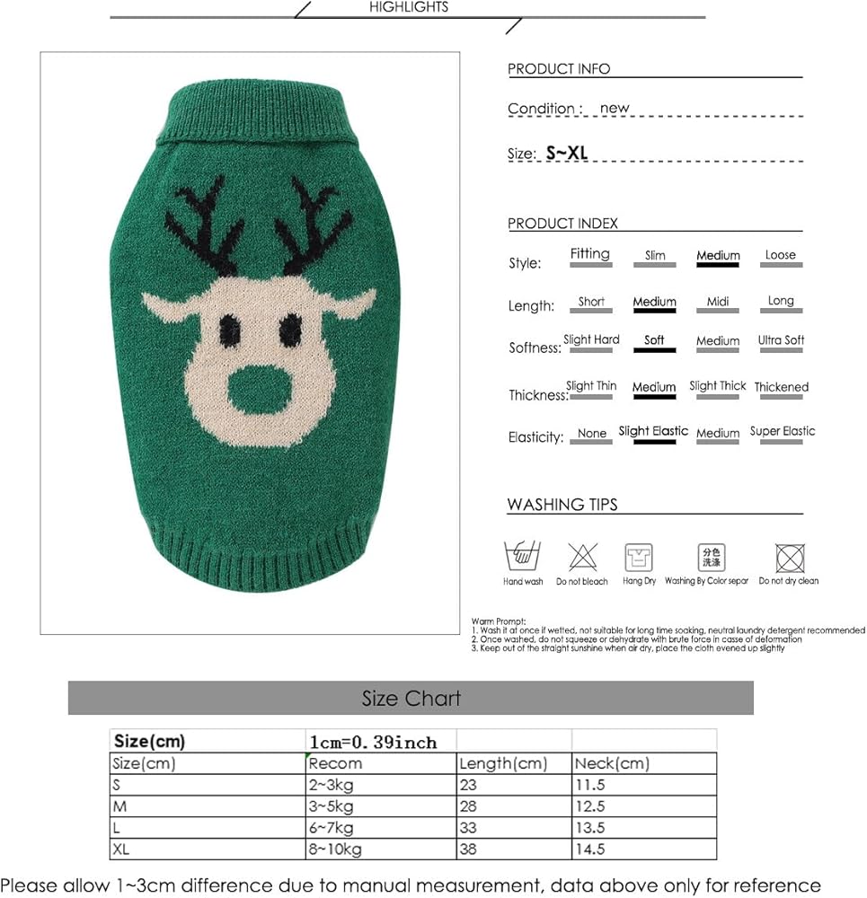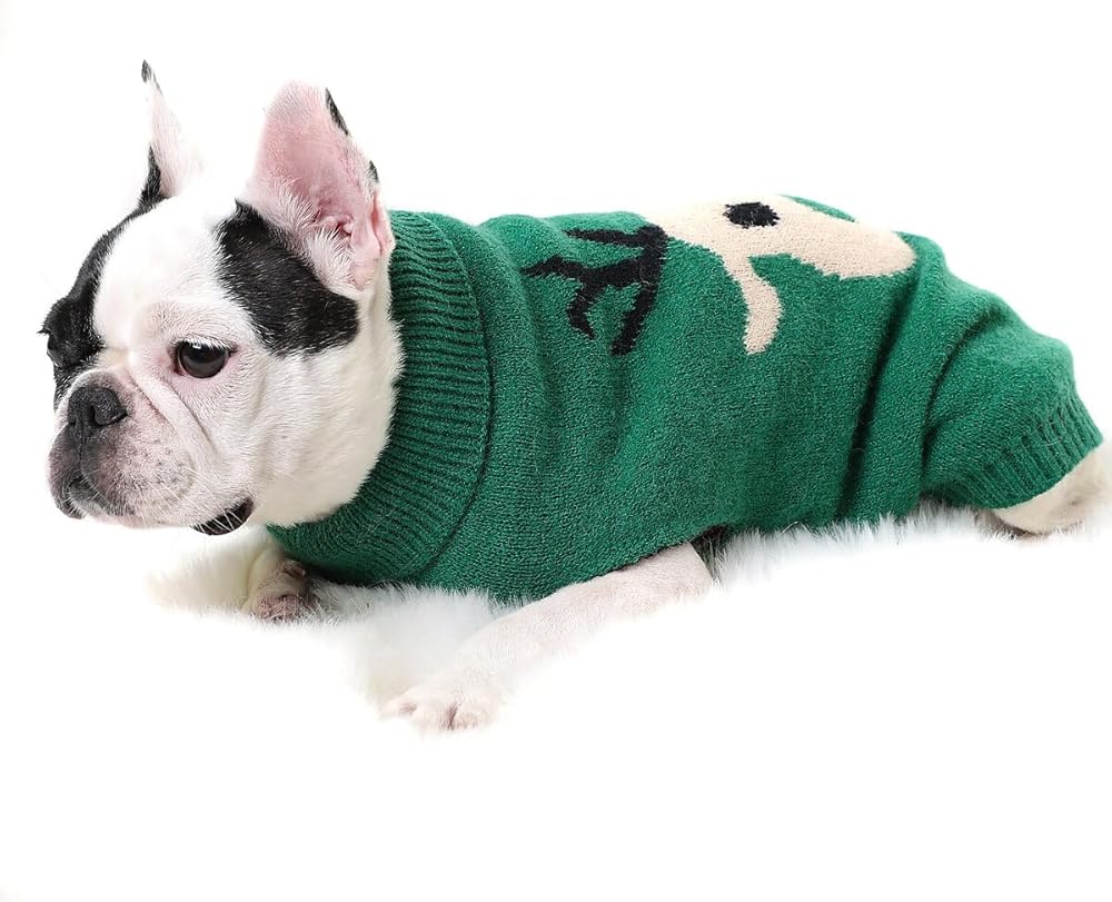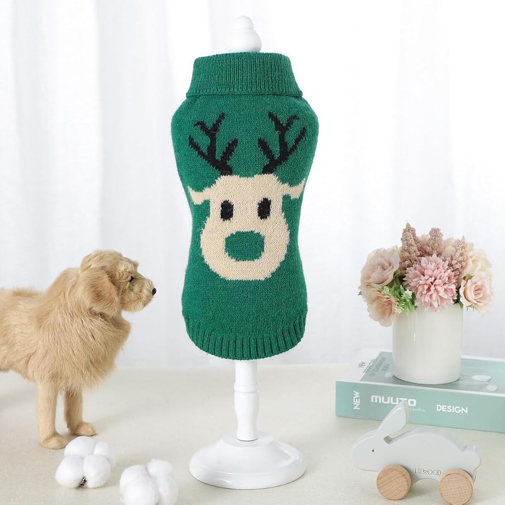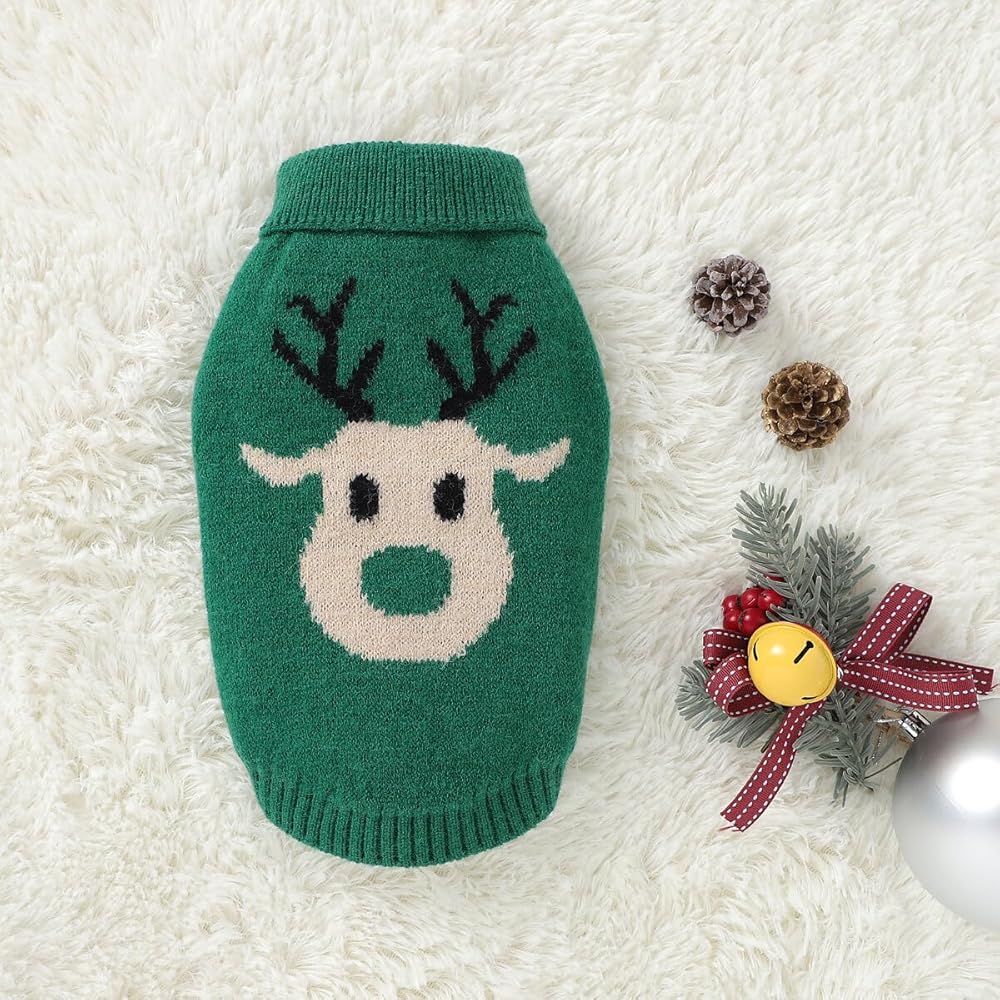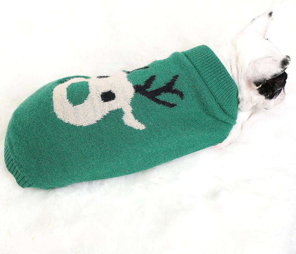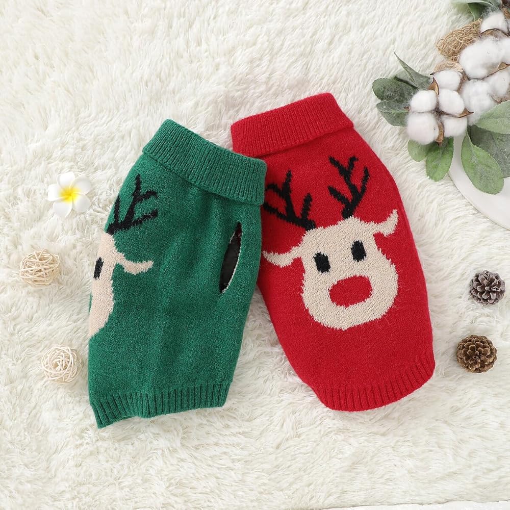 • PET CHRISTMAS CLOTHING: The red/ green pet knit sweater with cute reindeer pattern on the back is ideal for pet Christmas dressing and makes your dog stand out.