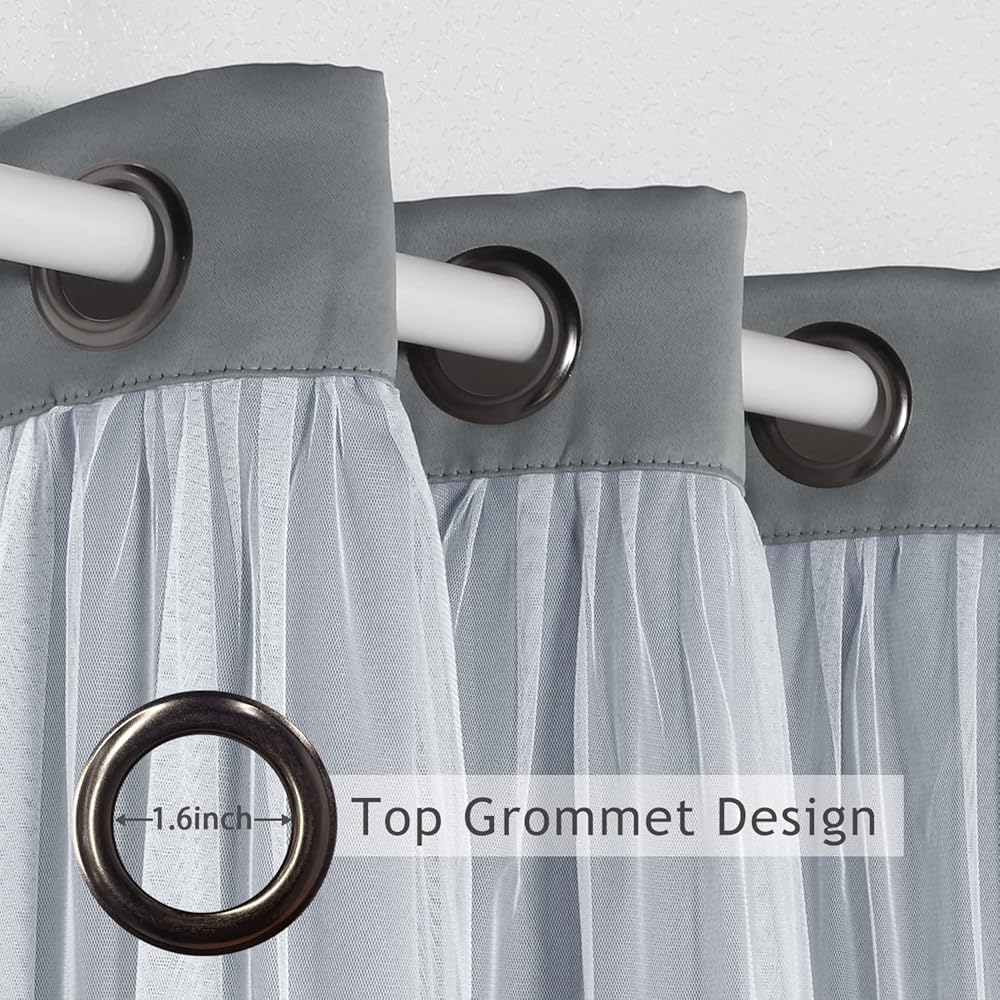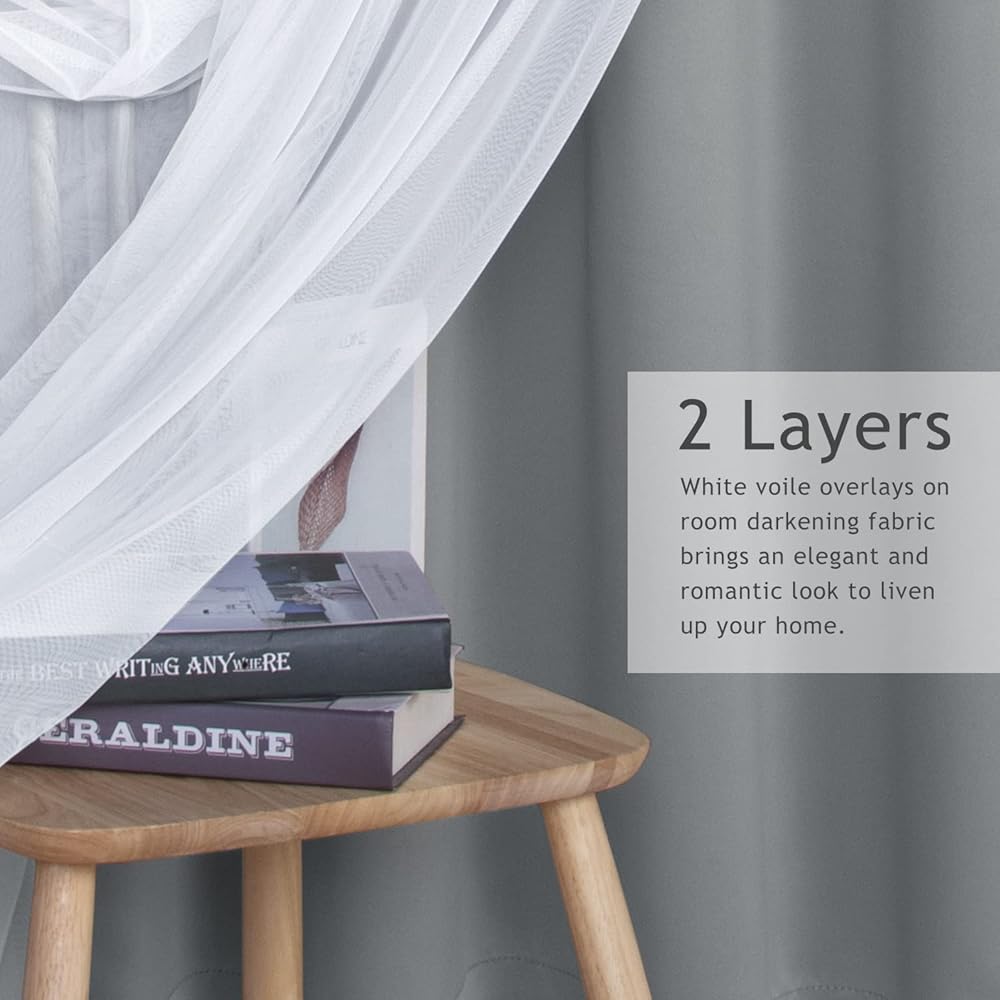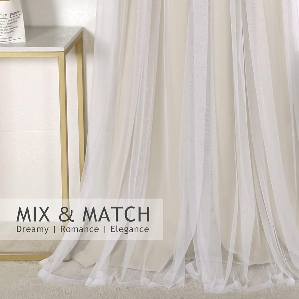 • مزيج ومطابقة: طبقات الفوال الأبيض على ستائر التعتيم بألوان مختلفة مما يضفي مظهرًا أنيقًا ورومانسيًا لإضفاء الحيوية على أي ديكور منزلي. الستائر ذات تصميم مدمج، لذلك تحتاج إلى قضيب ستارة واحد فقط.