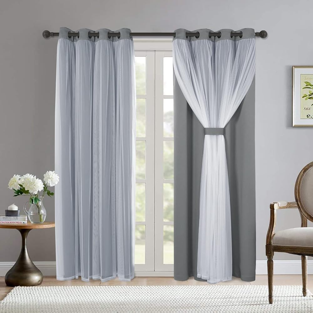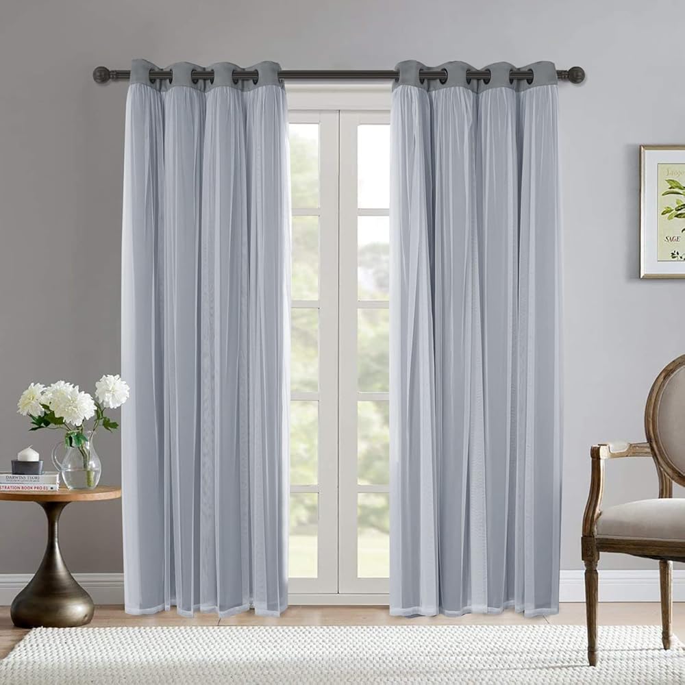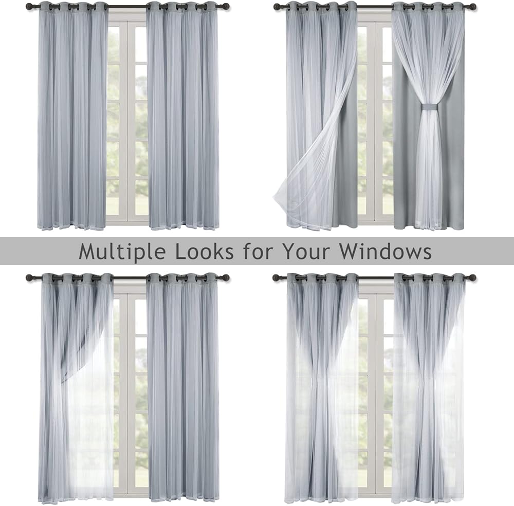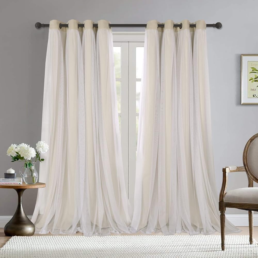 • مزيج ومطابقة: طبقات الفوال الأبيض على ستائر التعتيم بألوان مختلفة مما يضفي مظهرًا أنيقًا ورومانسيًا لإضفاء الحيوية على أي ديكور منزلي. الستائر ذات تصميم مدمج، لذلك تحتاج إلى قضيب ستارة واحد فقط.