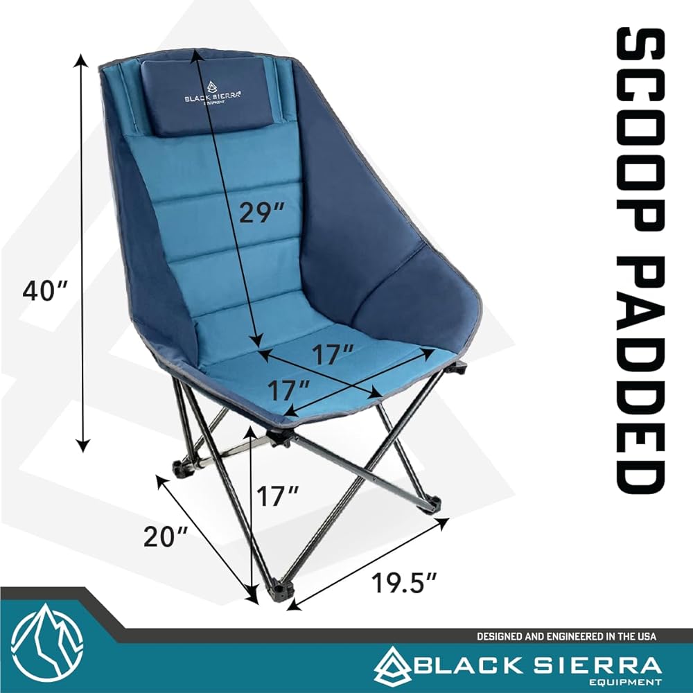 - دعم دائم: إطار فولاذي مطلي بمسحوق شديد التحمل يدعم 250 باوند. يبلغ مقاس هذا الكرسي الكبير 39.5 انش ارتفاعًا، 32.25 انش طولًا، 27.75 انش عمقًا عند فتحه