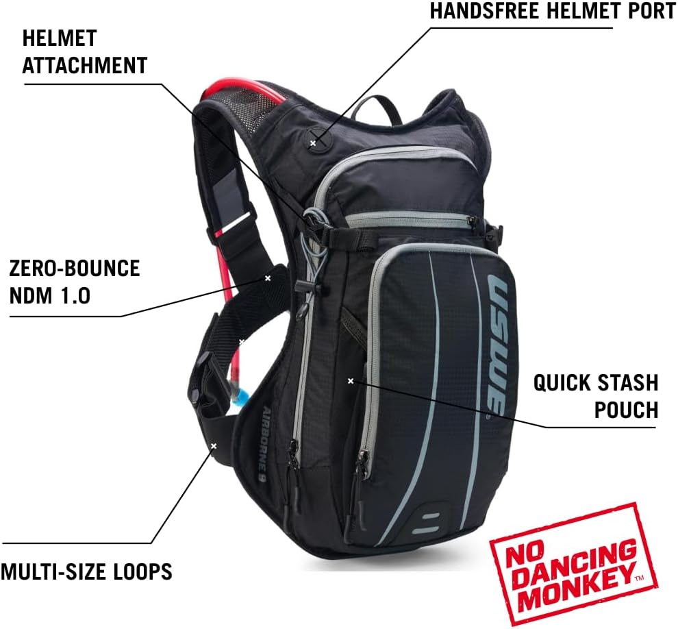 USWE Airborne - حزمة الترطيب مع المثانة الترطيب، حقيبة ظهر خالية من الارتداد لMTB، ركوب الدراجات، ركوب الدراجات الجبلية