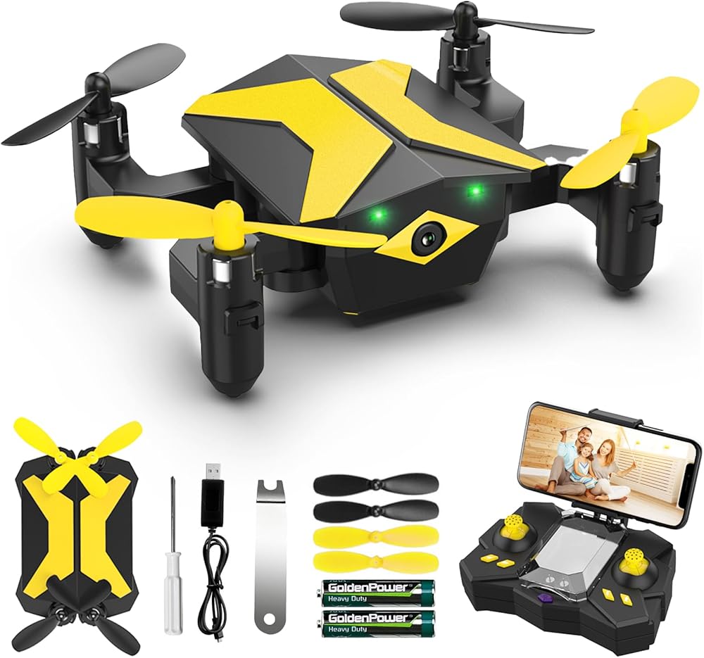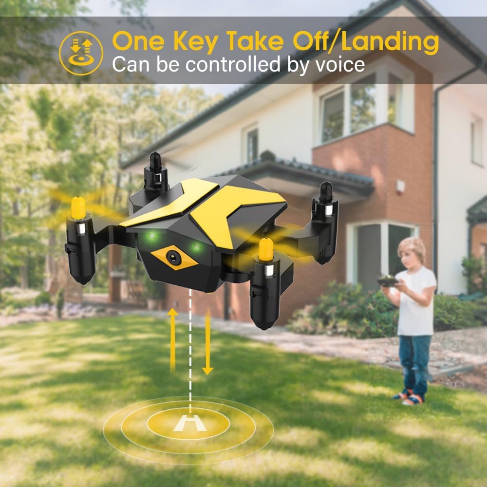 طائرة بدون طيار صغيرة مع طائرات بدون طيار للأطفال المبتدئين، طائرة RC كوادكوبتر مع تطبيق فيديو FPV، التحكم الصوتي، تثبيت الارتفاع، وضع مقطوعة الرأس، رحلة المسار، طائرة بدون طيار للأطفال قابلة للطي هدايا للأولاد والبنات - أصفر