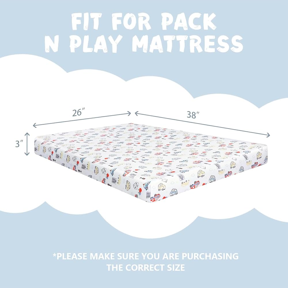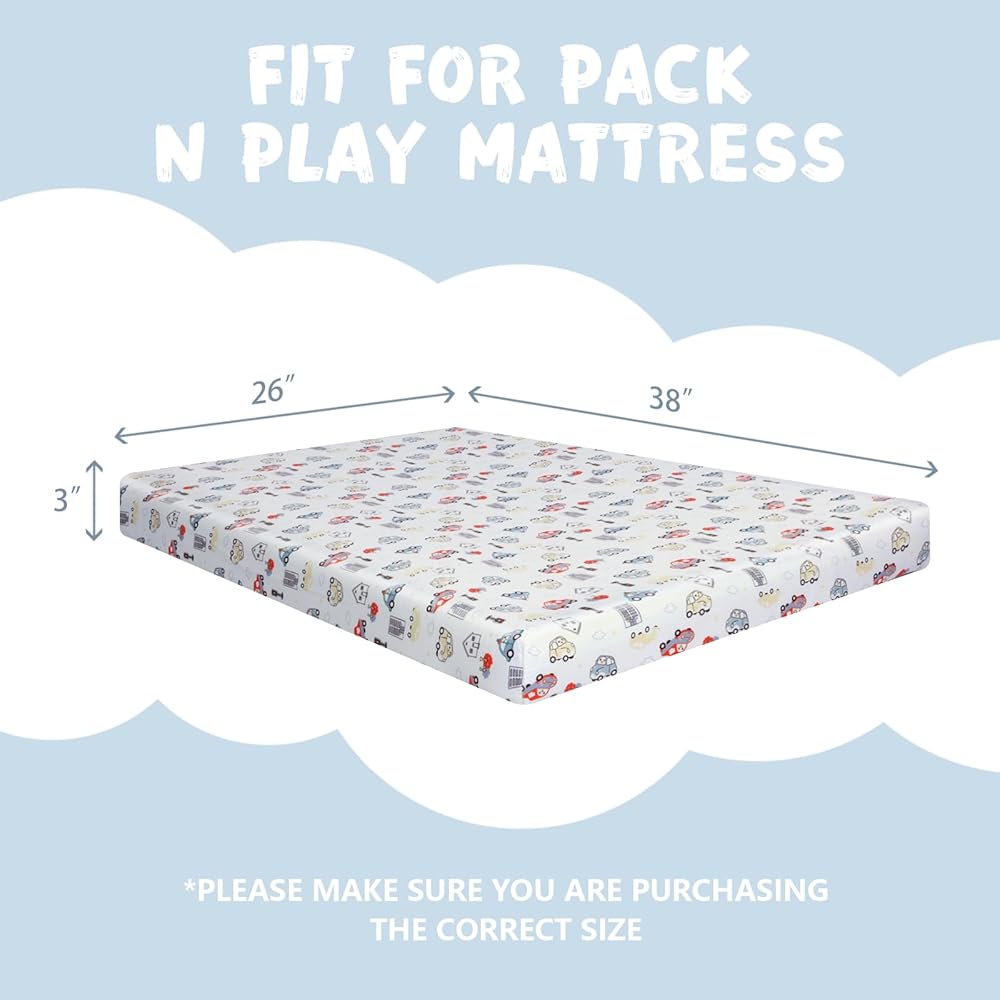 ❤ ملاءمة عالمية - مقاس 38 انش × 26 انش × 3 انش. تأتي ملاءات سرير الأطفال الصغيرة الخاصة بنا مع شريط مطاطي كامل 360 درجة حول الحافة لملاءمة مريحة وآمنة لمعظم مراتب باك اند بلاي ومراتب سرير الأطفال الصغيرة المحمولة. من السهل جدًا وضعها في مكانها حتى عندما تحتاج إلى تغيير ملاءات مراتب باك اند بلاي بسرعة.