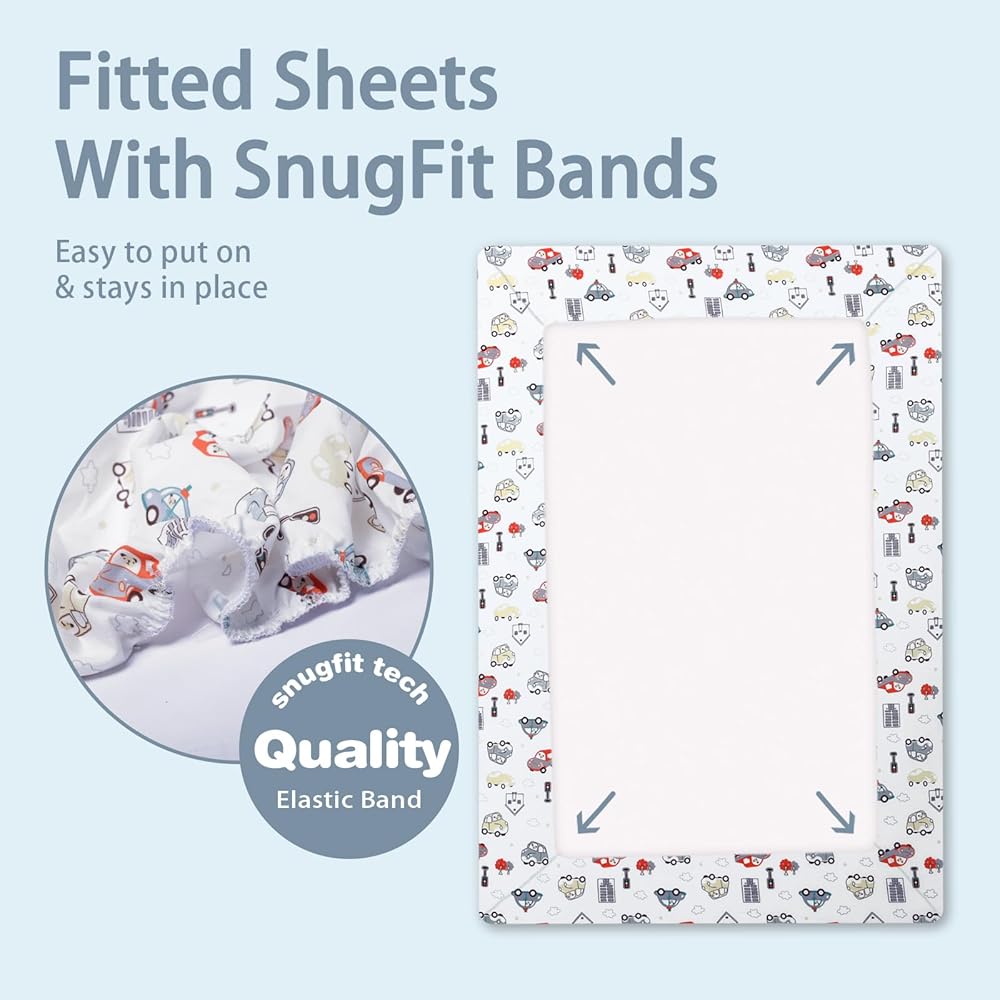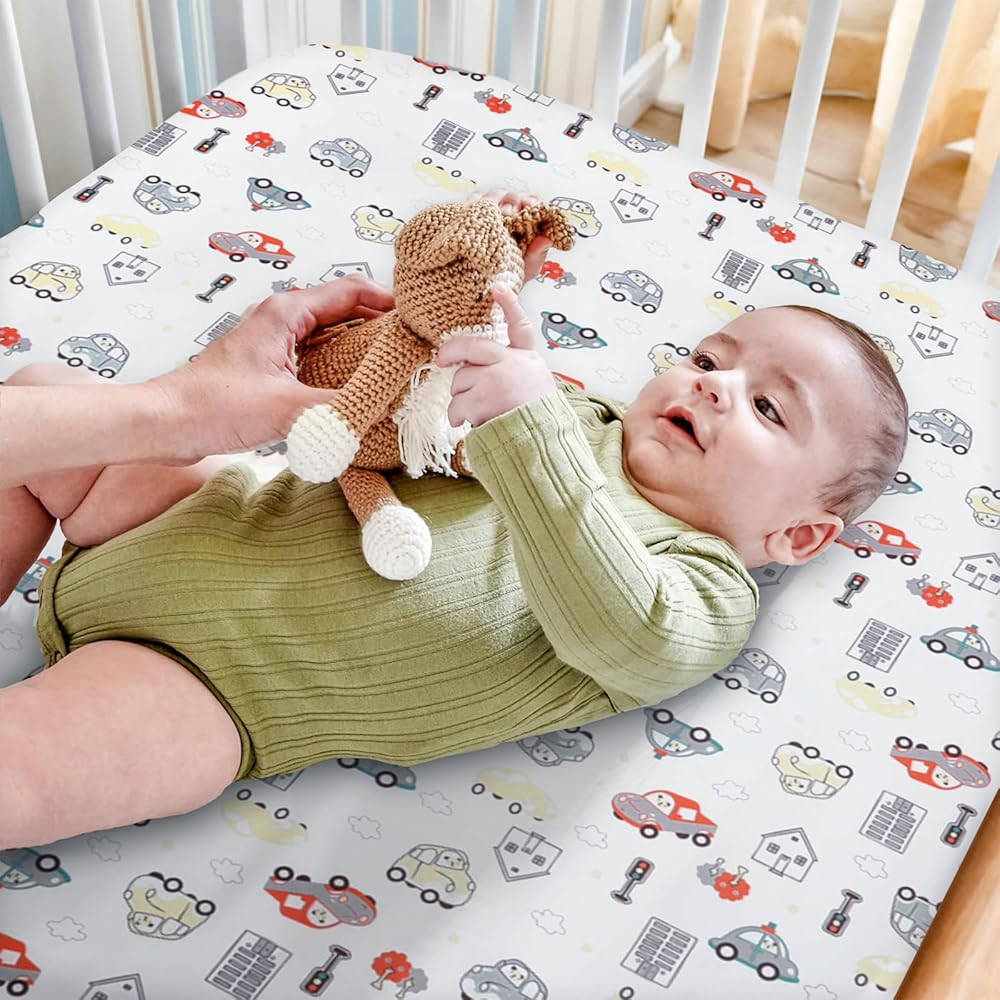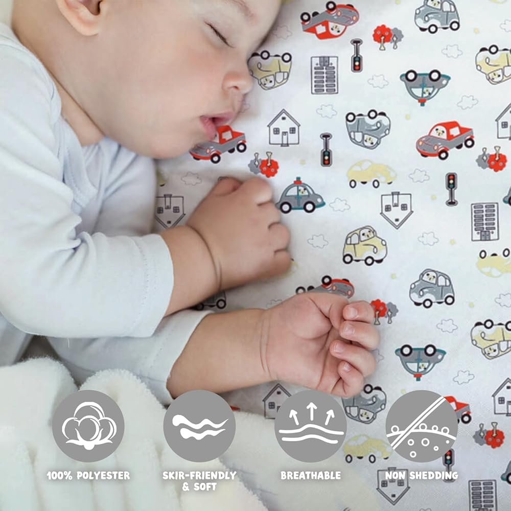 جيدة التهوية وناعمة: ملاءة سرير الأطفال الخاصة بنا مصنوعة من المايكروفايبر بنسبة 100%، مما يوفر لمسة فاخرة ومريحة. مصممة لتكون ناعمة ولطيفة على بشرة طفلك، توفر ملاءات سرير الأطفال هذه سطحًا مريحًا وجيد التهوية.