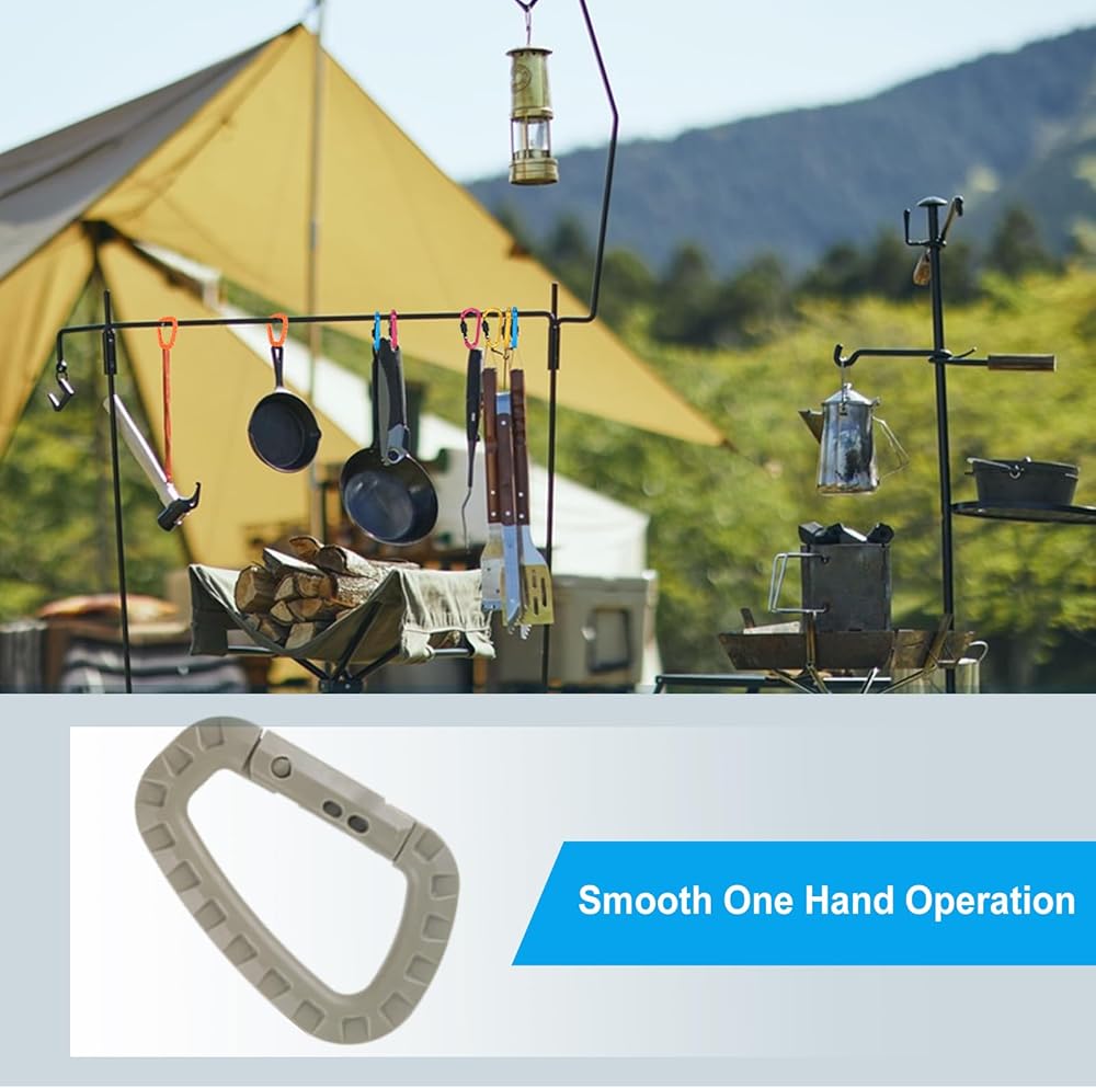 سلسلة مفاتيح بحلقة تسلق تكتيكية - 12 قطعة من حلقات حلقة على شكل حرف D ومشابك تروس