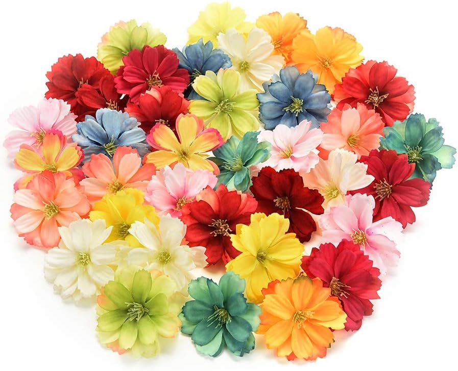رؤوس زهور وهمية بالجملة للحرف اليدوية الصغيرة زهور حرير صناعية رأس الفاوانيا ديزي ديكور زهرة DIY للمنزل وحفلات الزفاف والسيارة وديكور الزهور المزيفة 50 قطعة 4 سم (ملونة)