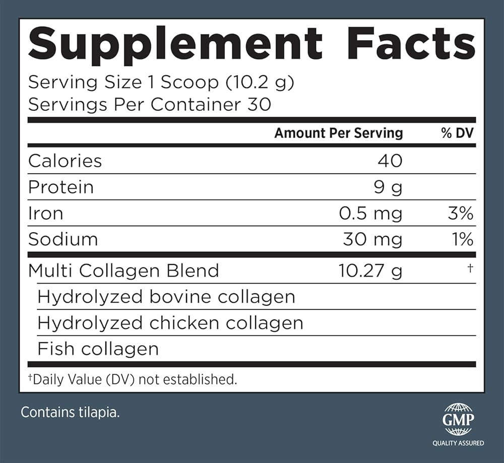 مكمل ممتاز متعدد الكولاجين: البروتين الأكثر وفرة في جسمك، توفر مكملات الكولاجين عددًا كبيرًا من الفوائد، مثل بشرة مشدودة وأكثر شبابًا، وتقوية شعرك وأظافرك، ودعم مفاصلك. يحتوي مزيج الكولاجين المتعدد الخاص بنا على الكولاجين البقري والدجاج المتحلل بالإضافة إلى كولاجين السمك. مع مغرفة واحدة يوميًا ممزوجة بـ 8 أونصة. من الماء أو السائل في درجة حرارة الغرفة، شاهد بشرتك وأظافرك وشعرك يزدهر.