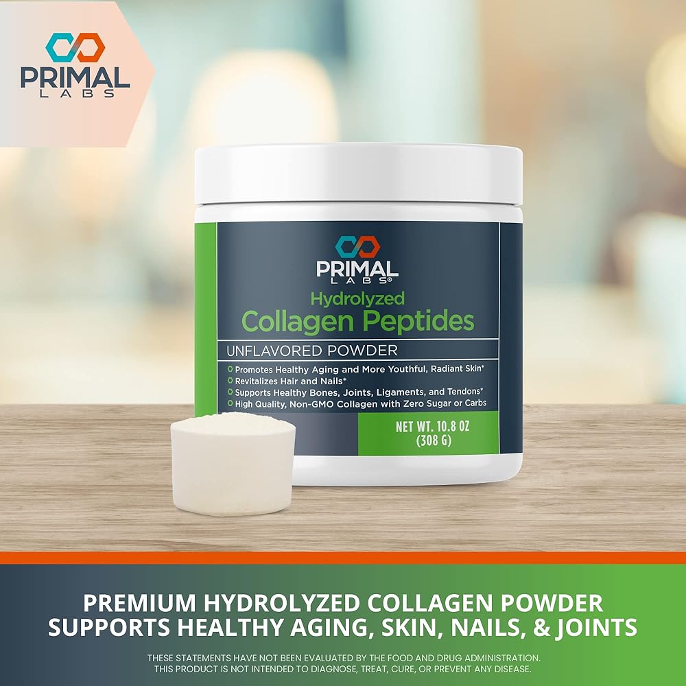 ببتيدات الكولاجين المتحللة من Primal Health - مزيج متعدد الكولاجين - يعزز صحة الشعر والأظافر والبشرة والمفاصل - غير معدل وراثيًا وصديق للكيتو - مسحوق بروتين بدون نكهة - 30 حصة