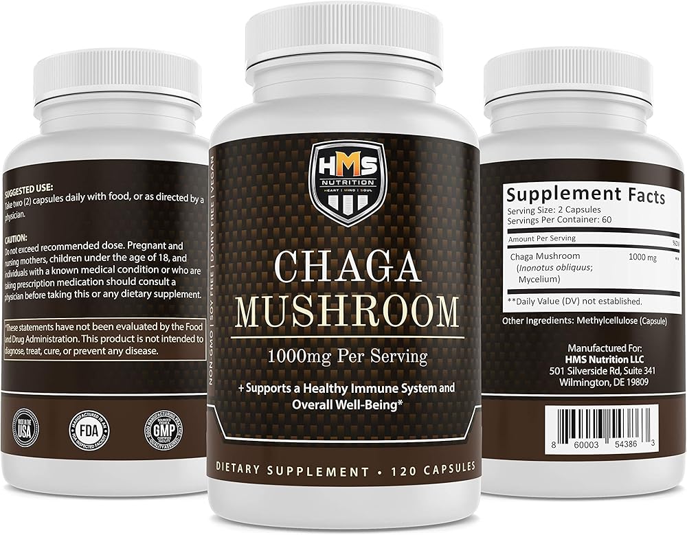 • TRUST YOUR SUPPLEMENTS – HMS Nutrition's Chaga Mushroom Supplements are manufactured right here in the USA, produced in a registered and inspected facility under strict cGMP standards. We stand by our products and believe you will too!