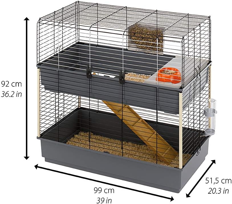 مساحة معيشة كبيرة من طابقين | يبلغ مقاس قفص الأرانب 39 طولًا × 20.3 عرضًا × 36.2 ارتفاعًا وهو تصميم مثالي لفصل مساحة معيشة الأرنب في طابق واحد وفضلاته على أرضية أخرى