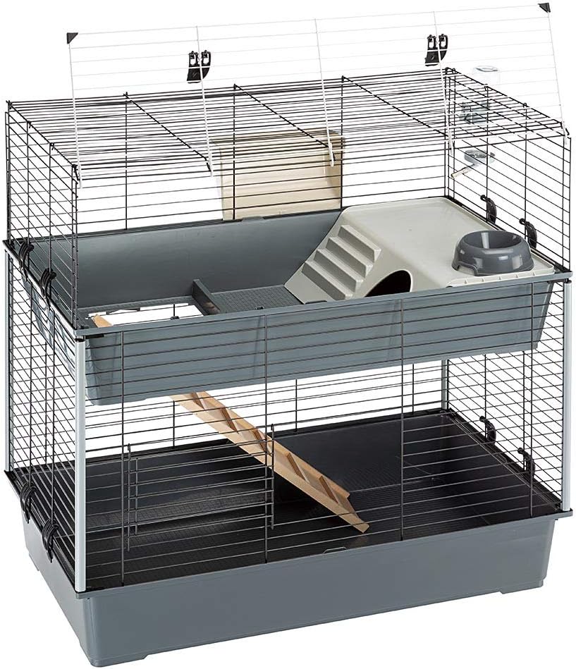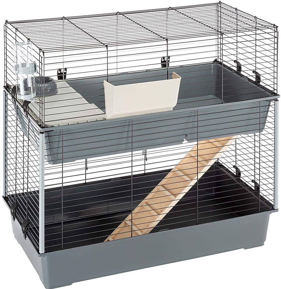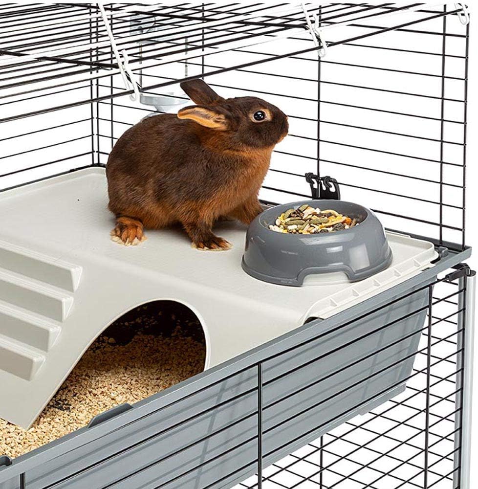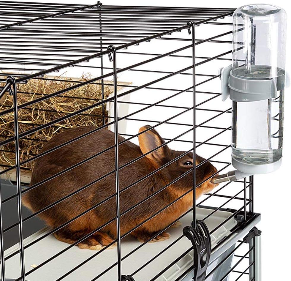 مجموعة مثالية للمبتدئين في قفص الأرانب | يتضمن قفص الأرانب زجاجة مياه كبيرة ووعاء تغذية ووعاء تغذية من القش ومنطقة تغذية مرتفعة مع ربعين منفصلين للمعيشة