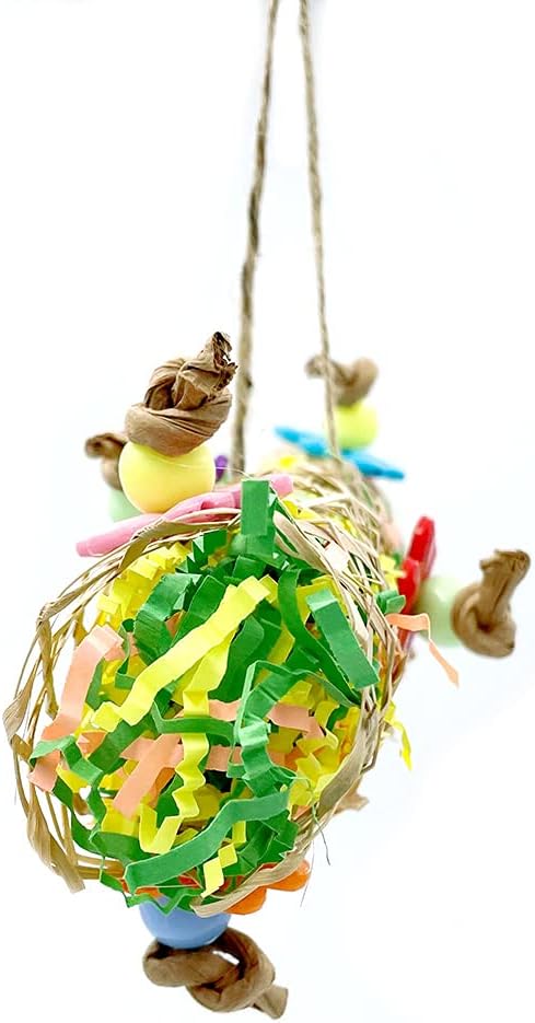 【مادة وإكسسوارات آمنة】– ألعاب الطيور الخاصة بنا مصنوعة من الورق المجعد والخيزران وحبل الكتان. قم بالترقية باستخدام مشابك الأمان المصنوعة من الستانلس ستيل. يمكنك تعليقها في القفص واللعب مع طيورك بأمان.