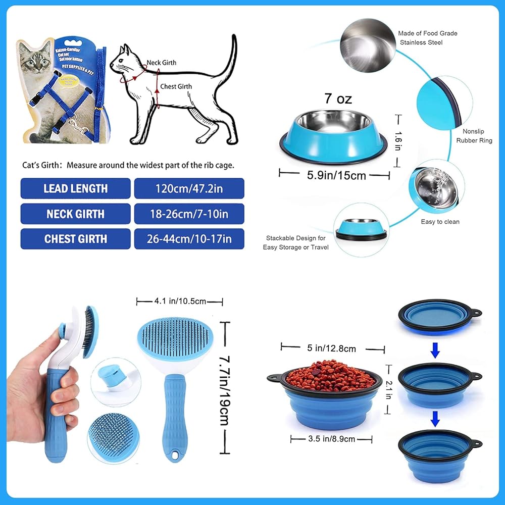 • 😺 ألوان متطابقة عالية الجودة - مجموعة طوق ومقود للقطط باللون الأزرق، وسرير للقطط، وحامل للقطط. إنها مثالية لمجموعة القطط الصغيرة المبتدئة ومستلزمات القطط في المنزل أو عند السفر مع قطتك الصغيرة. تم تصميم مستلزمات القطط عالية الجودة المتطابقة الألوان لتوفير الراحة والمرح والقيمة.