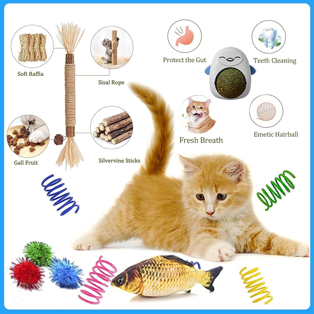 • 😺 لا توجد منتجات ضارة - لا تحتوي مجموعتنا على أي شيء يمكن أن يضر قطتك، لأننا اخترنا المواد الأكثر أمانًا. لا تتردد في الاتصال بنا قبل أو بعد عملية الشراء إذا كانت لديك أي أسئلة أو ارتباك؛ نضمن استرداد الأموال أو الاستبدال خلال 30 يومًا