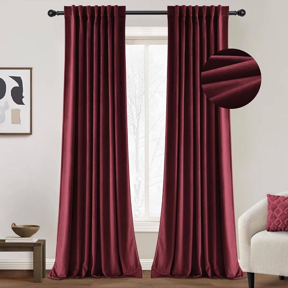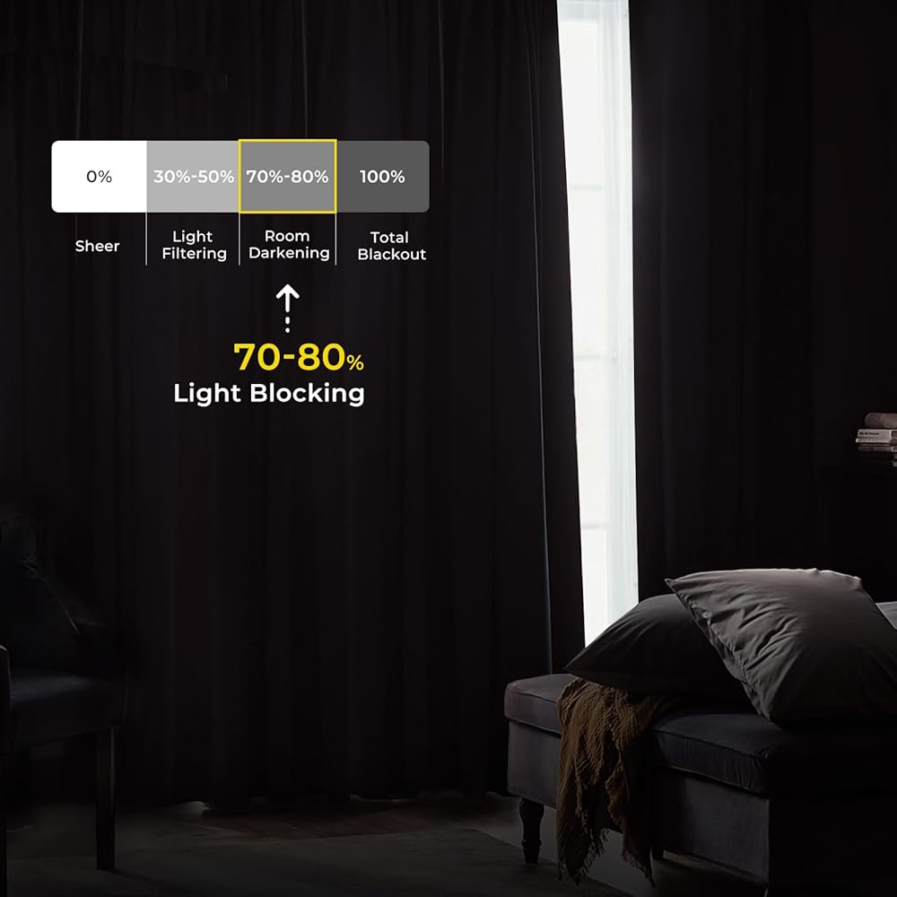 【ستائر تحجب الضوء】ستائر مخملية سميكة وثقيلة ذات جودة عالية في الصناعة تتمتع بأداء مثالي للضوء، وتحجب 70-80% من أشعة الشمس المزعجة (اللون الداكن يعمل بشكل أفضل). ستائر التعتيم لغرفة النوم ستحمي نومك بشكل أفضل. ستائر مخملية معتمة للغرفة تحجب الأشعة فوق البنفسجية الضارة، وتقلل من الضوضاء وتقلل من تكلفة الطاقة مع موازنة درجة حرارة غرفتك. هذه الستائر المعزولة حرارياً رائعة لغرفة النوم وغرفة المعيشة وغرفة الأطفال وما إلى ذلك في الشتاء أو الصيف.