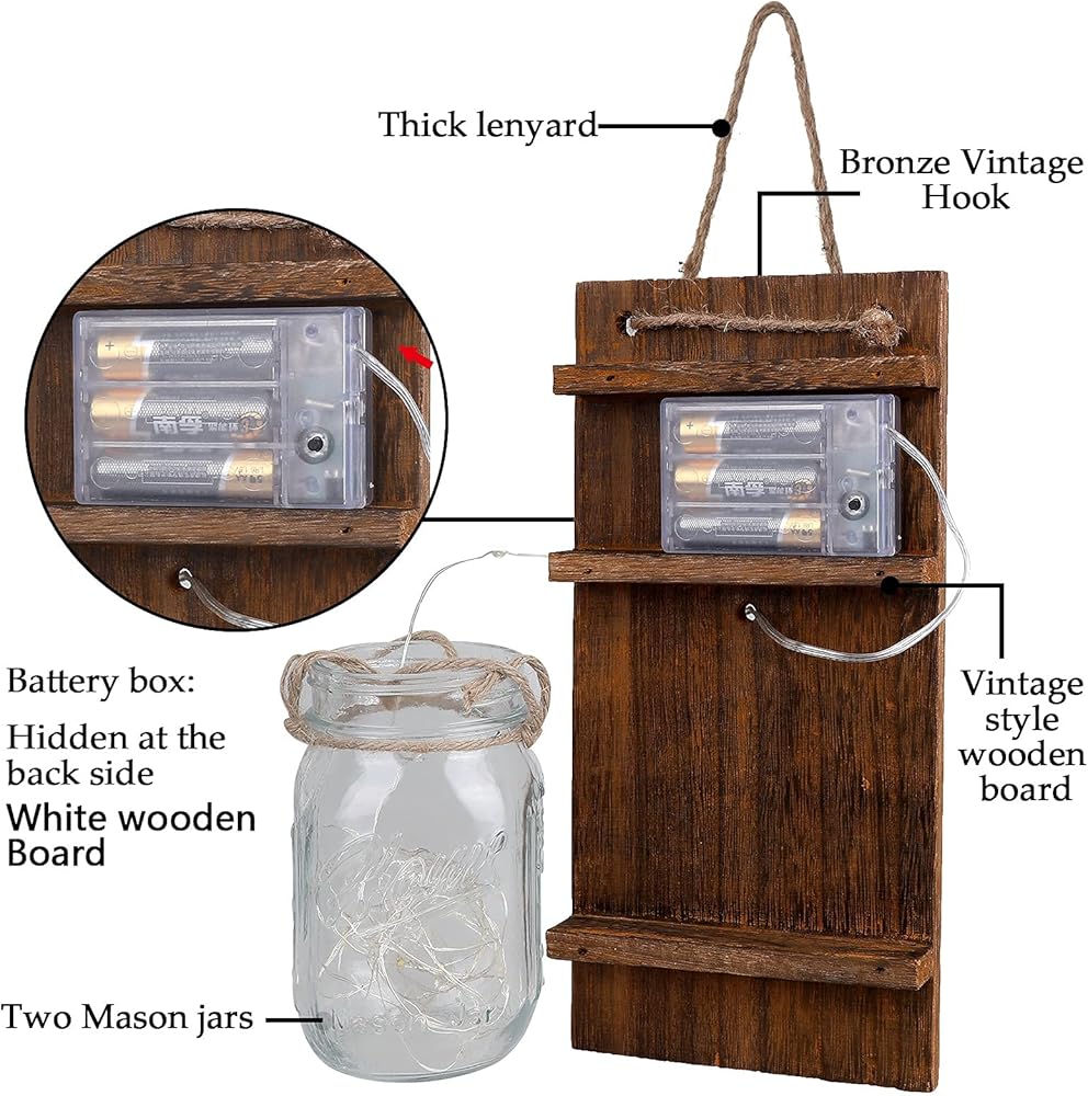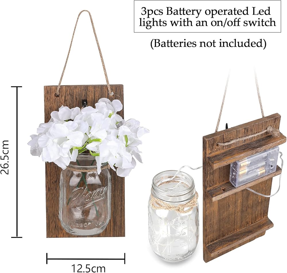 ديكور شمعدان دافئ: كزينة معلقة شمعدان برطمان ميسون في المنزل والردهة والمطبخ وجدار غرفة النوم. جرة ماسون مع سلسلة أضواء تنبعث منها توهجًا سحريًا ودافئًا؛ هذا الديكور الجداري الجميل والريفي سيجذب انتباهك بالكامل.
