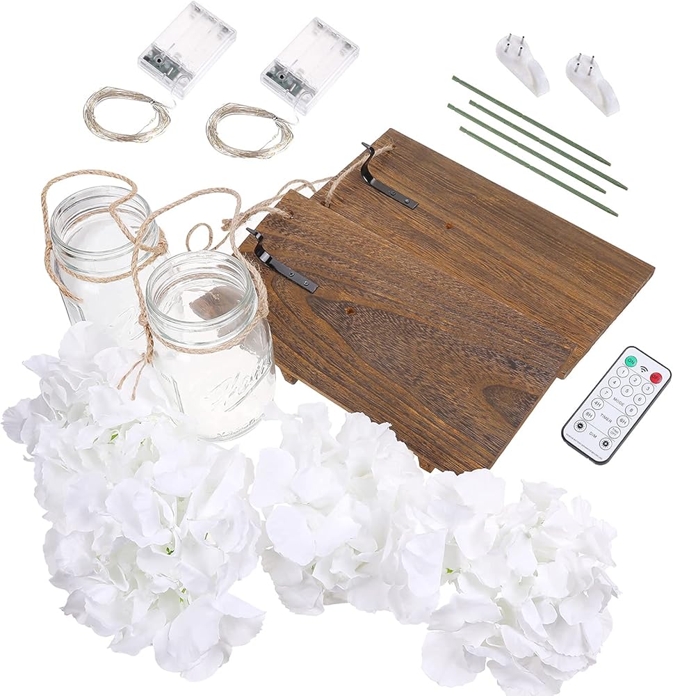 انبرو شمعدان حائط ريفي، مصابيح برطمان ماسون، ديكور منزلي ريفي مع خطافات من الحديد المطاوع، تصميم كوبية حريرية وشريط اضاءة LED لتزيين المنزل (مجموعة من قطعتين) ابيض كريمي
